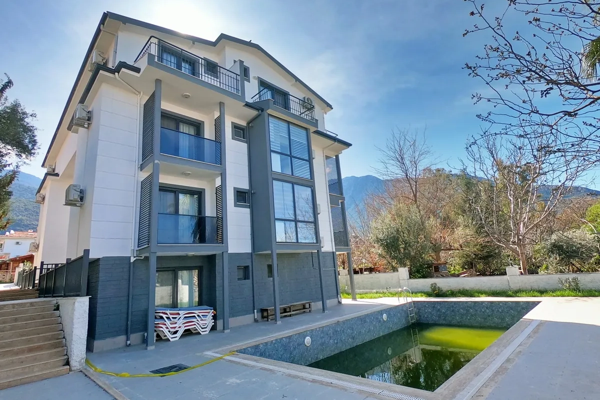 Discover a beautifully designed 3 bedroom reverse duplex apartment located in the peaceful and highly desirable area of Ovacik, only moments from the main road connecting you to Fethiye Town Center, Hisaronu, and the world-famous Oludeniz Beach.