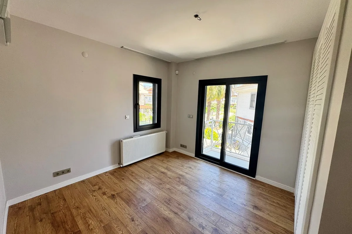 Located just 250 meters from the seafront, this bright and spacious duplex villa offers an exceptional lifestyle in the peaceful area of Koca Calis. Sitting on a generous 690 m² private plot, the property provides a beautifully landscaped garden, private parking, and a large swimming pool—perfect for those seeking privacy and comfort near the beach.