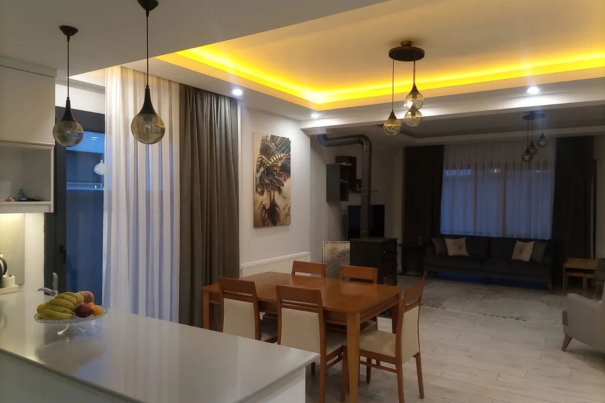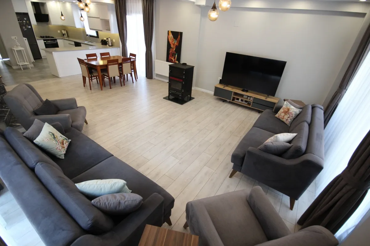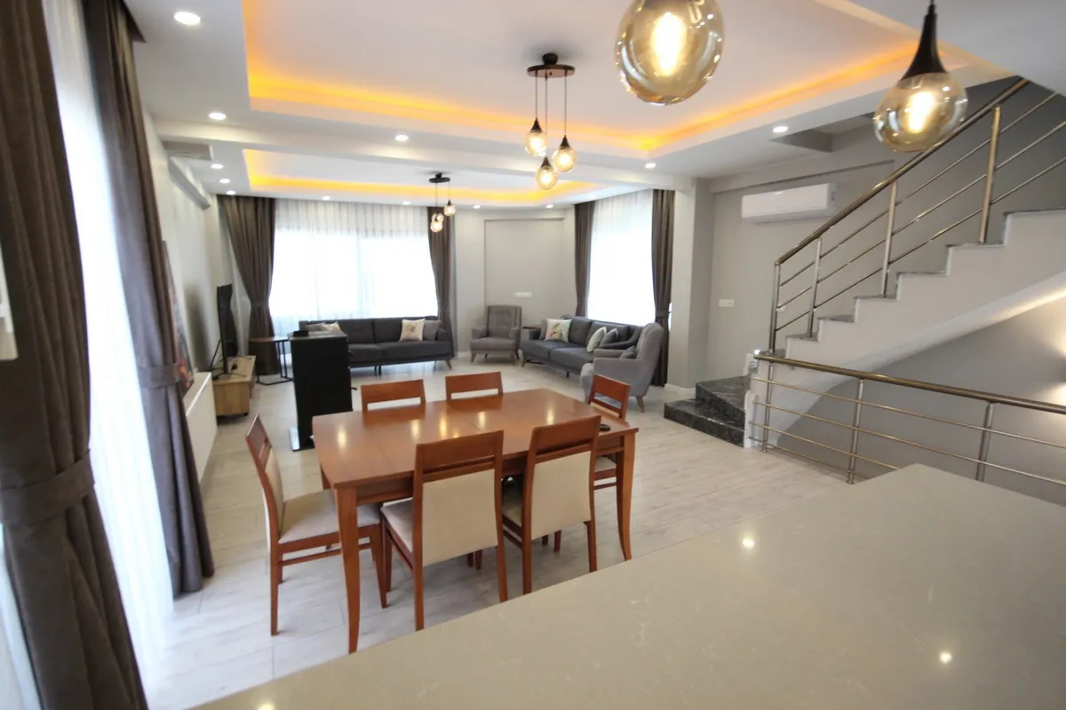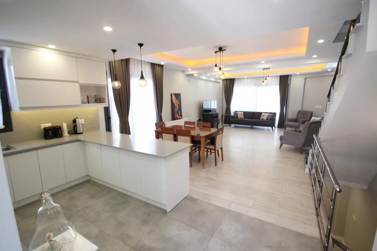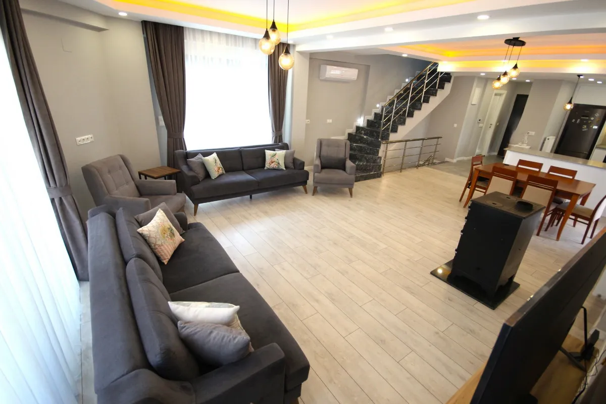 Experience the beauty of countryside living in this contemporary villa located in the charming village of Uzumlu, Fethiye. Offering a total of 233 m² of living space on a 260 m² private plot, this spacious property is perfect for families seeking comfort, privacy, and a connection with nature.