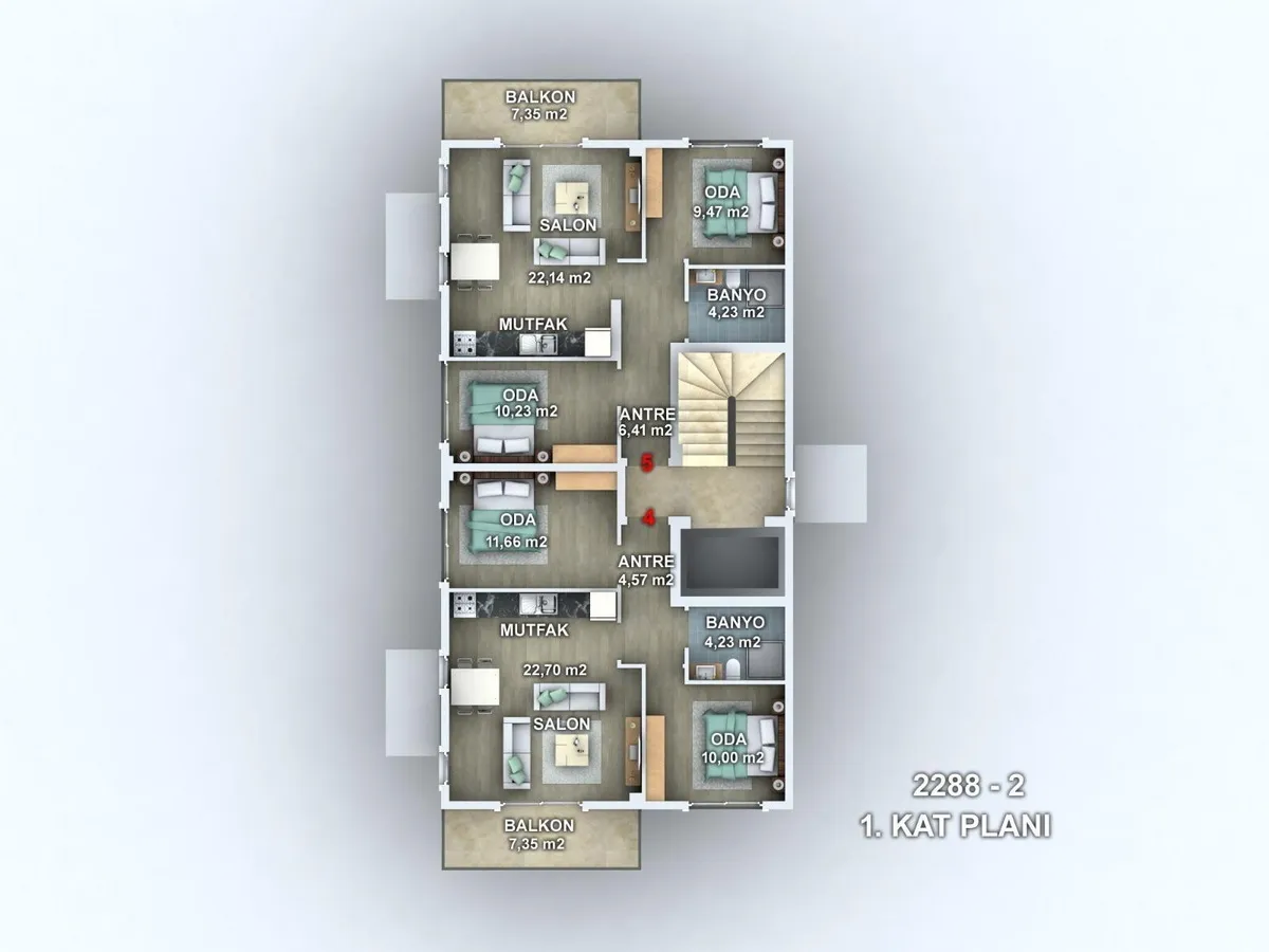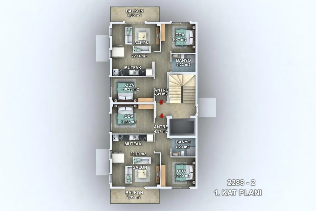 - 2 Bedroom Apartment: 7,250,000 TL (mid-floor)