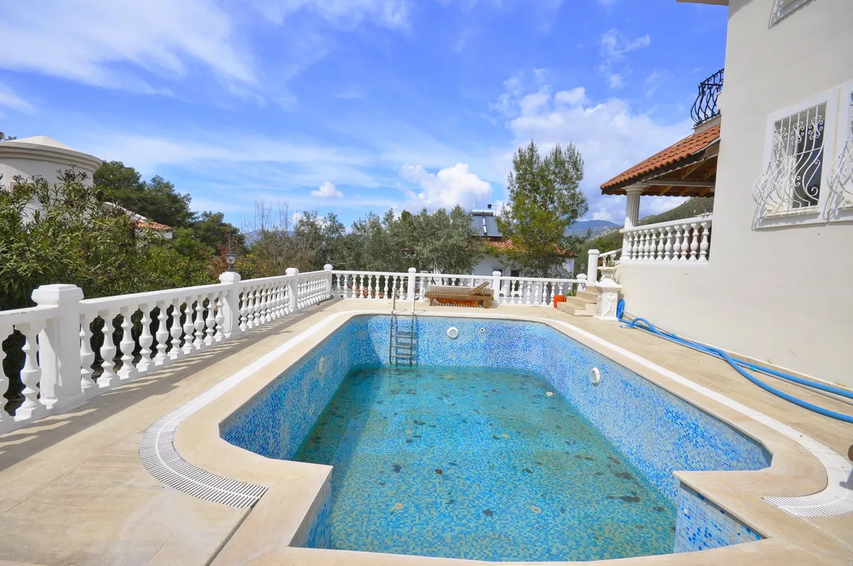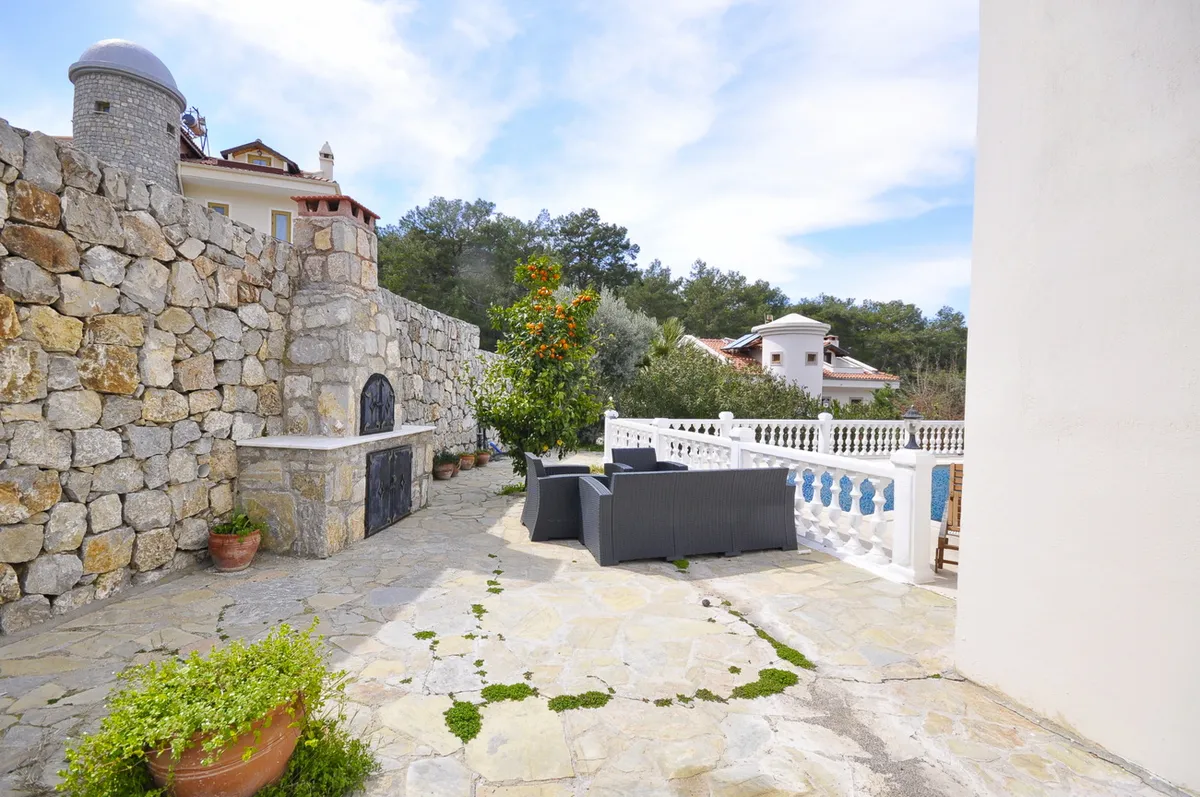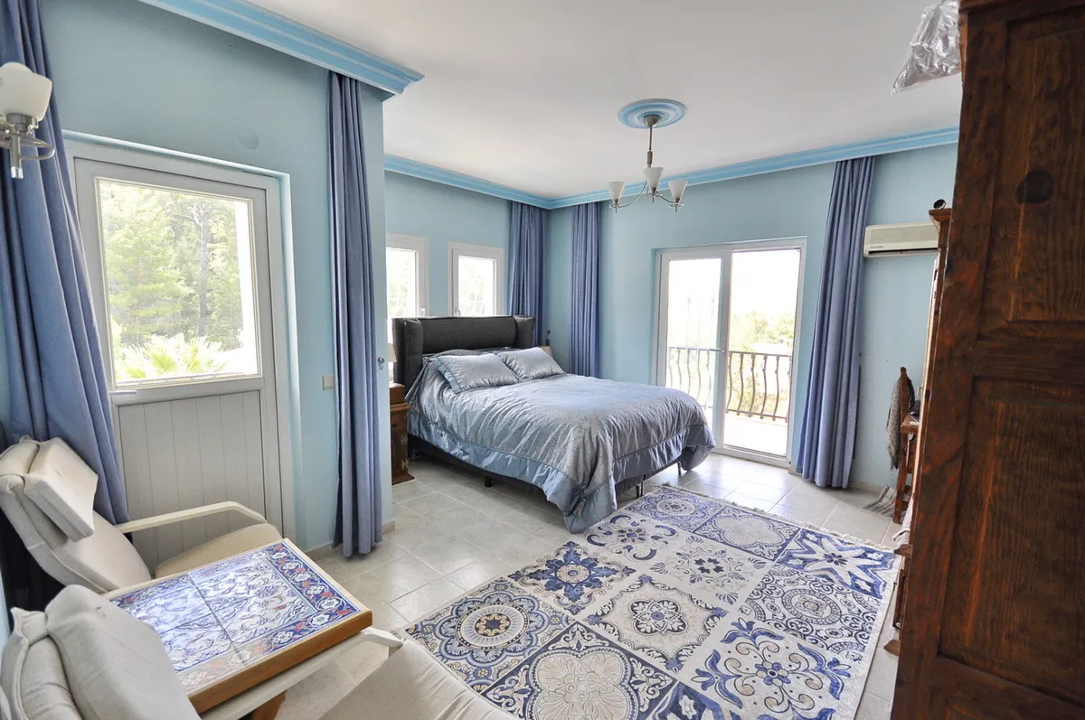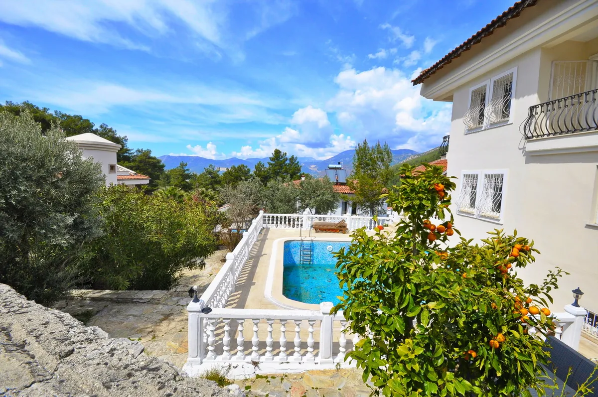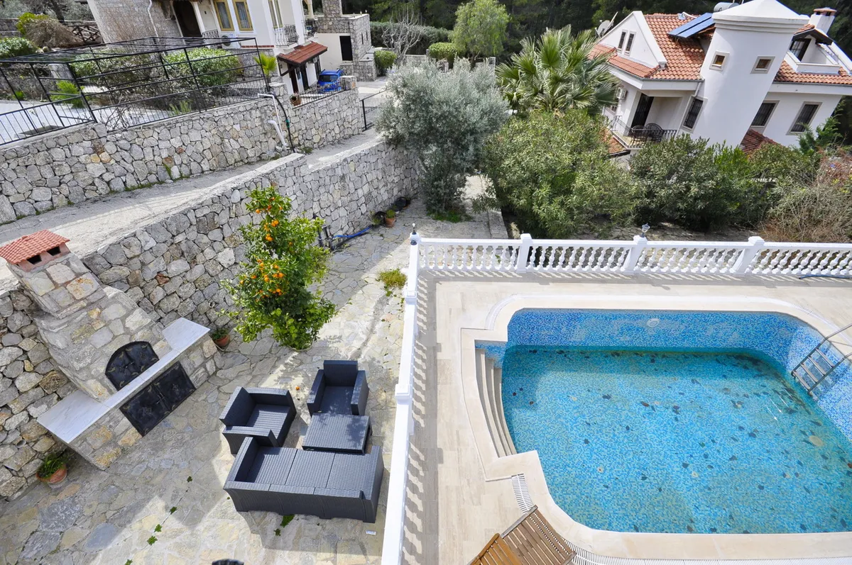 With a private gated entrance, multiple outdoor sitting areas, mature trees, and a spacious swimming pool, the property provides the perfect setting for tranquil living in one of Uzumlu’s most serene locations.