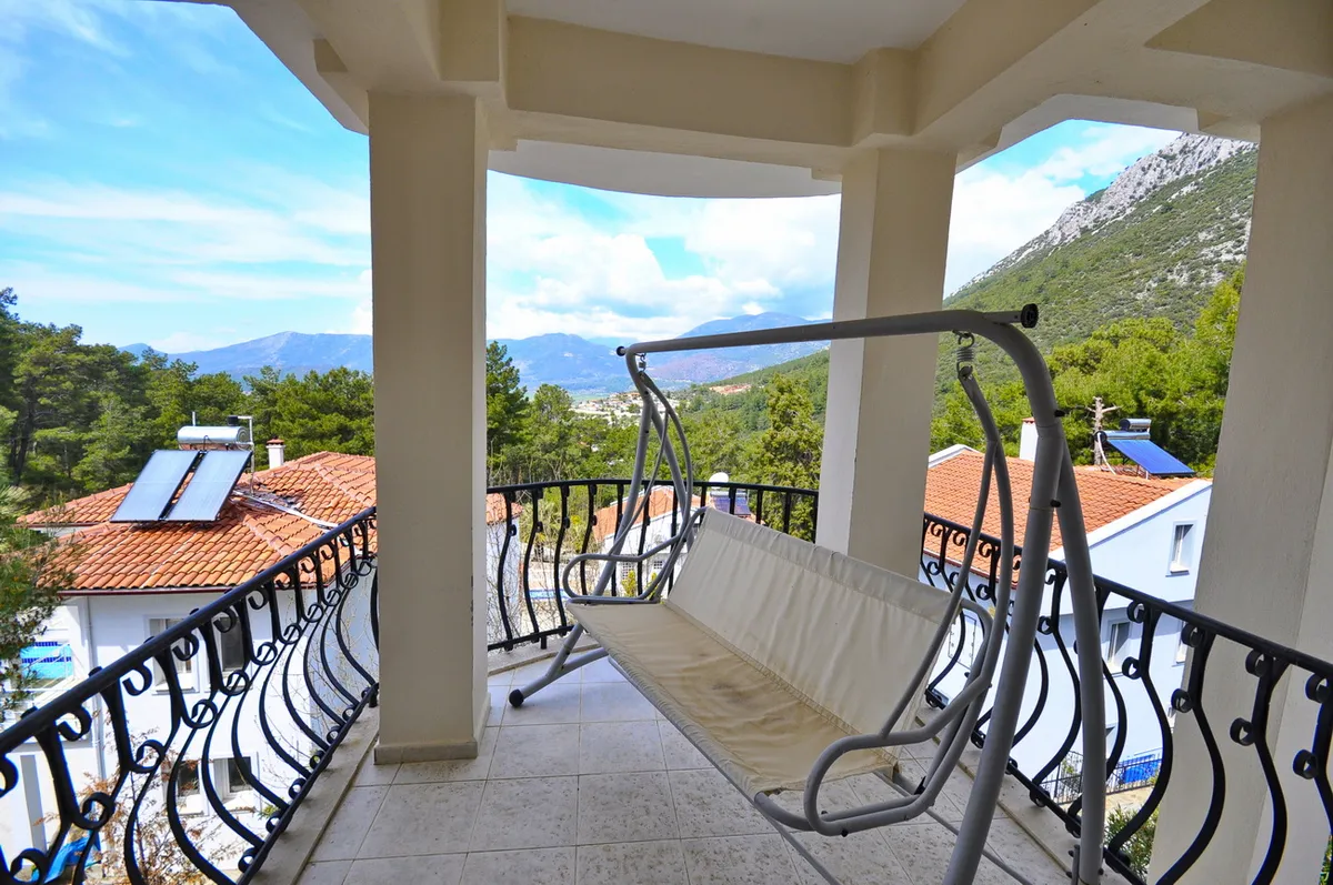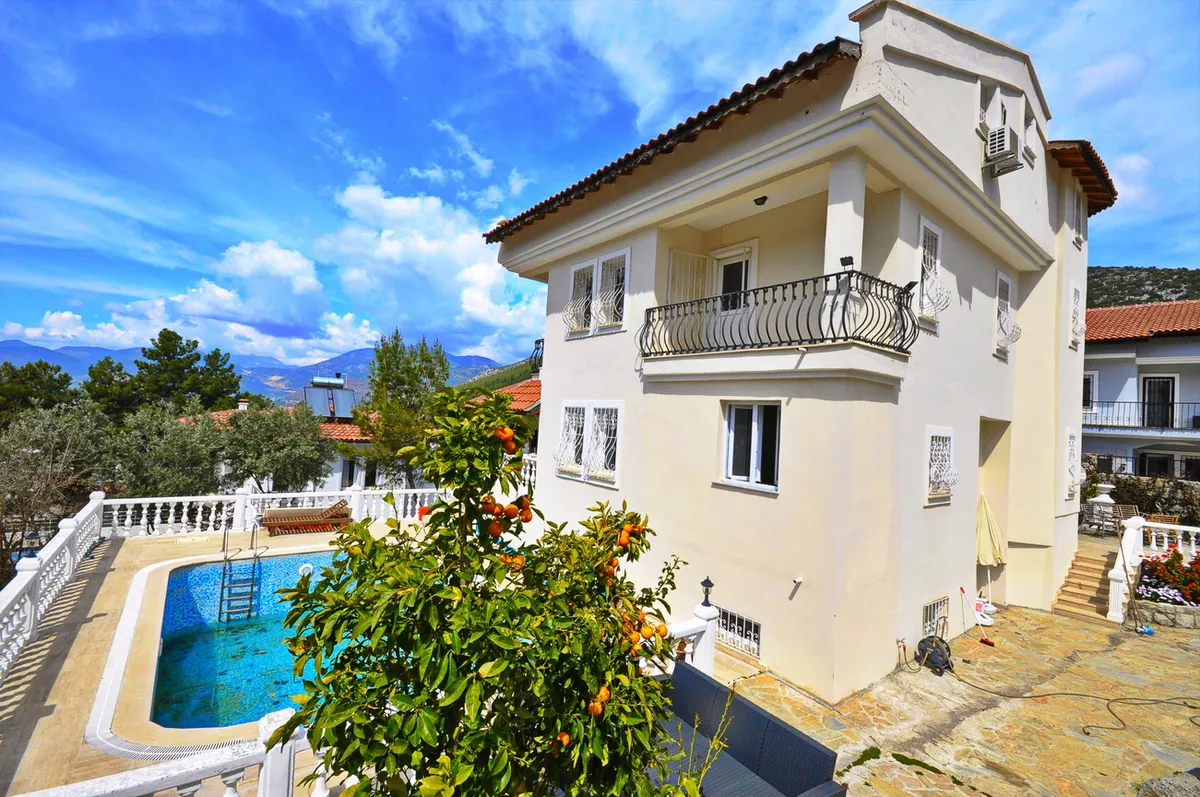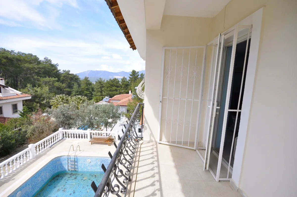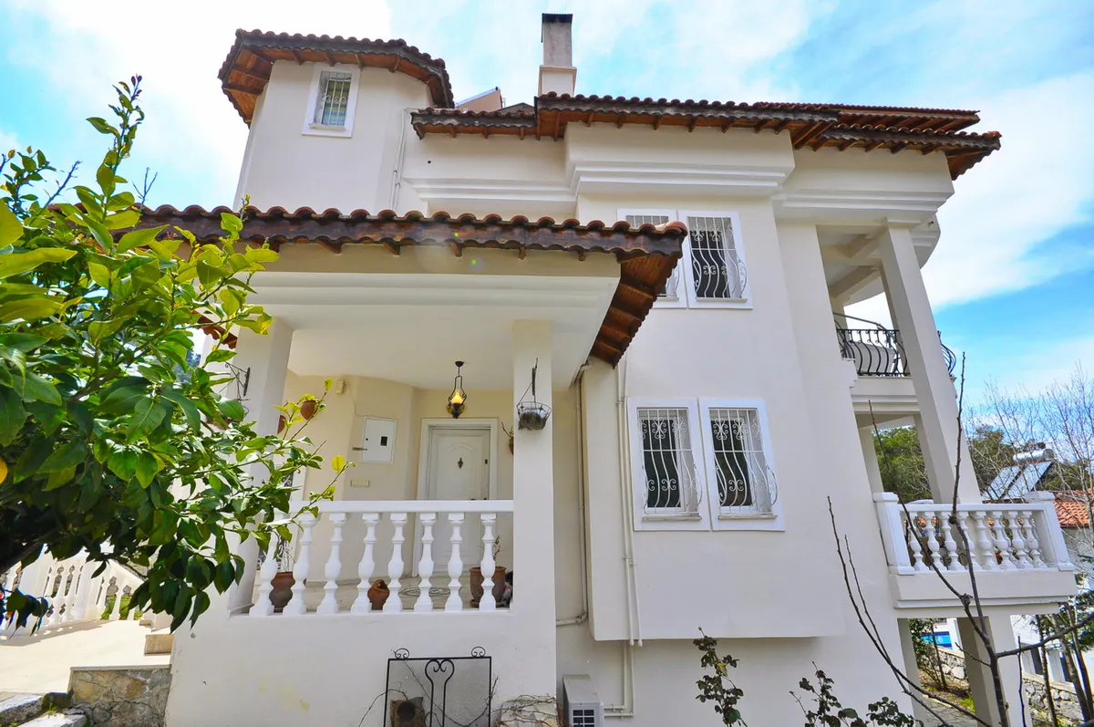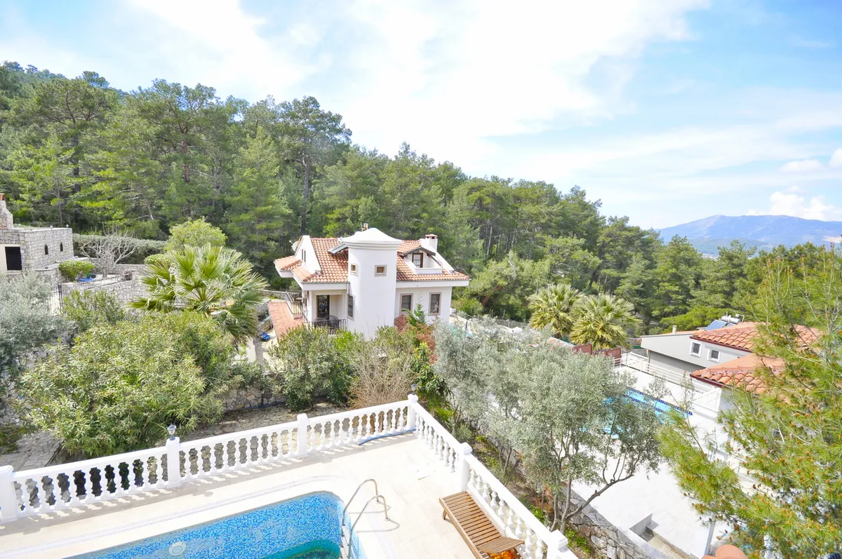 With a private gated entrance, multiple outdoor sitting areas, mature trees, and a spacious swimming pool, the property provides the perfect setting for tranquil living in one of Uzumlu’s most serene locations.