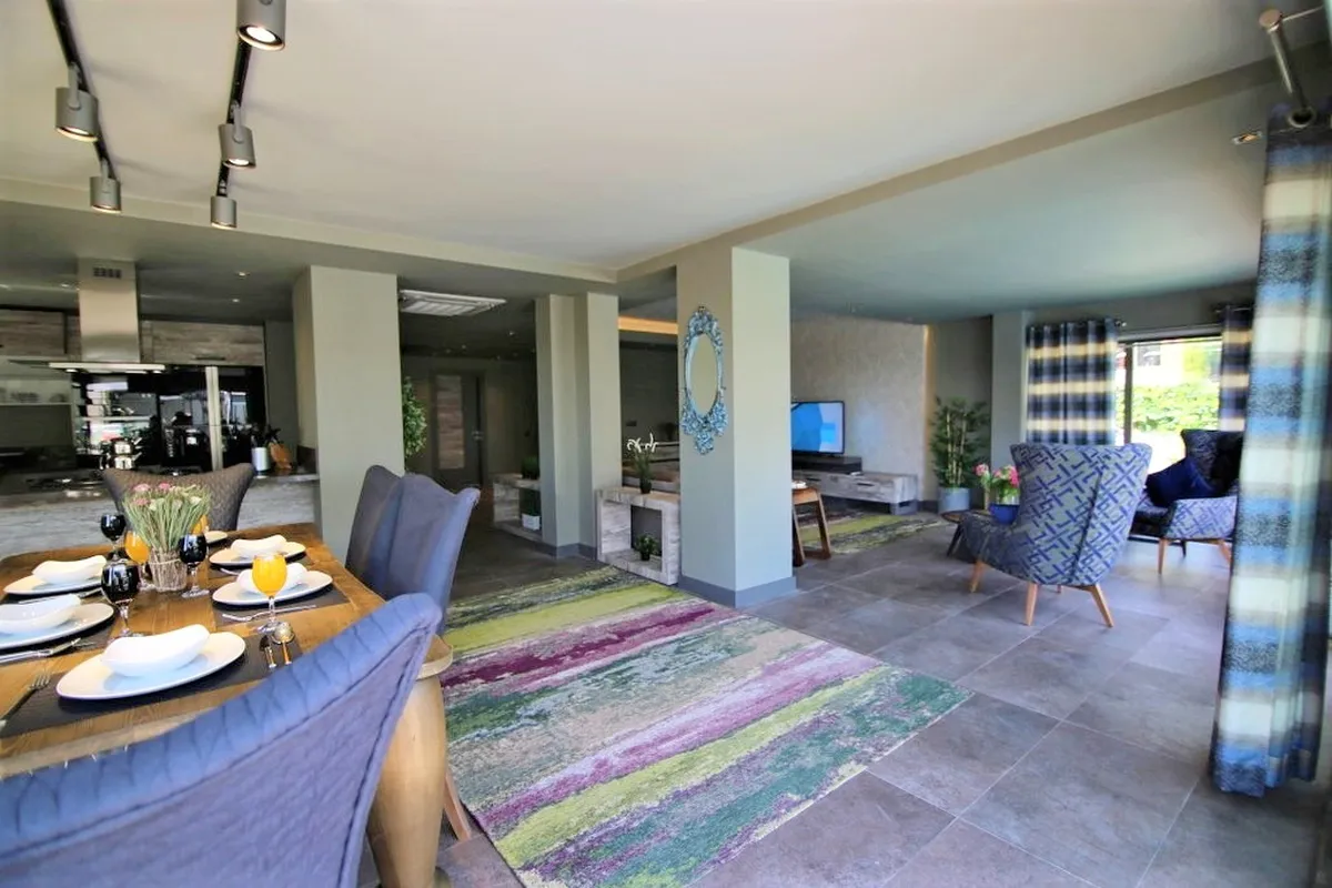 Open-plan living room, dining area, modern kitchen, double bedroom with en-suite - Upper Floor: