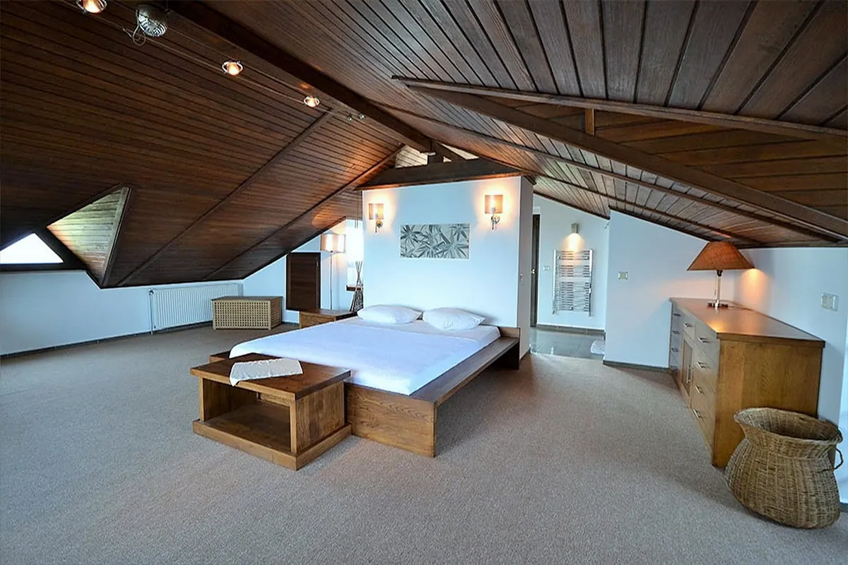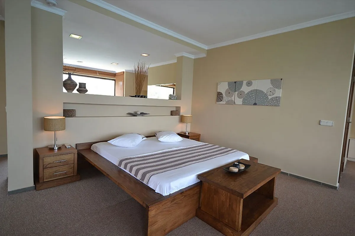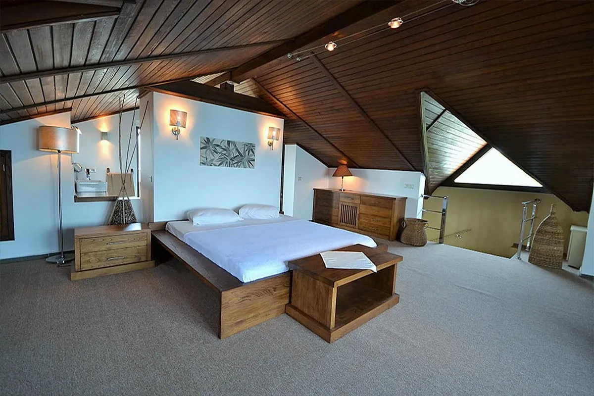 Step outside to your private pier, ideal for mooring your boat or enjoying direct access to the crystal-clear sea. The villa’s rear side features a sandy beach area perfect for swimming and sunbathing in total seclusion.