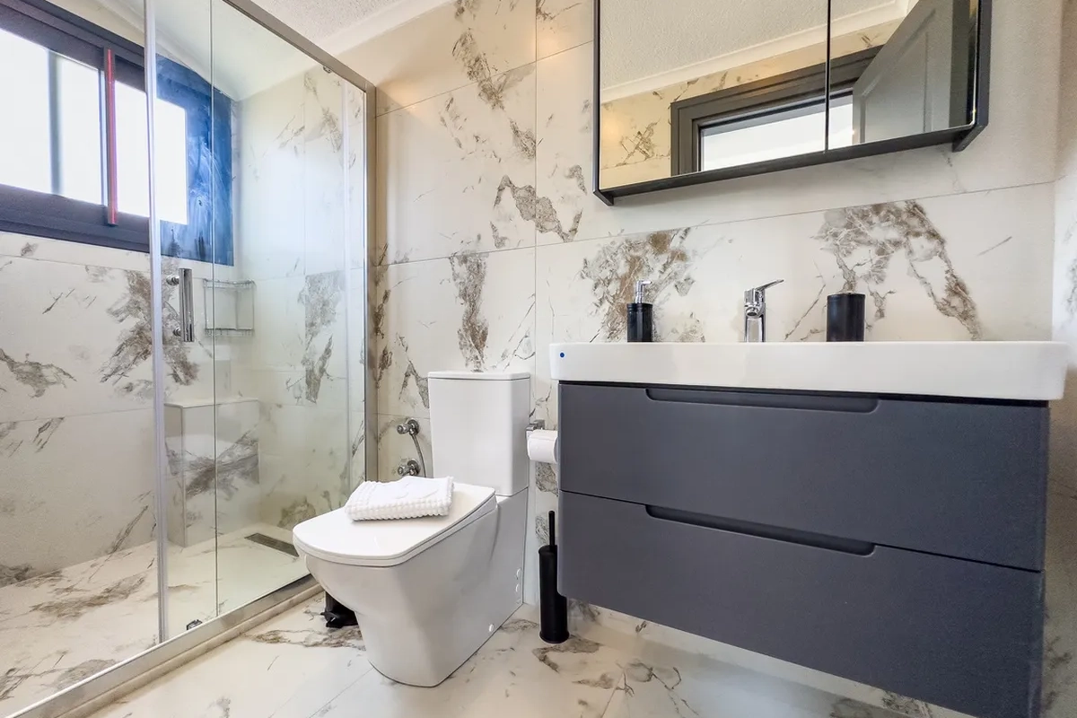 Two additional en-suite bedrooms; one of them benefits from a private rooftop terrace.