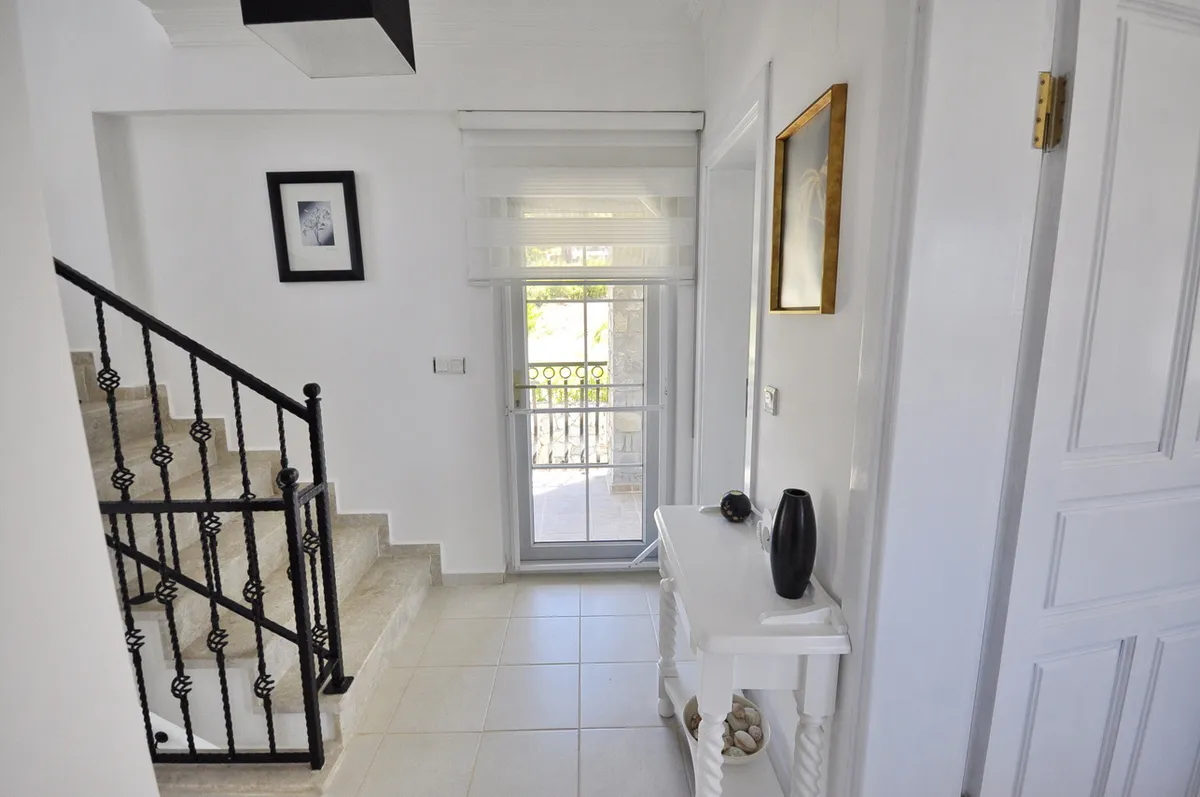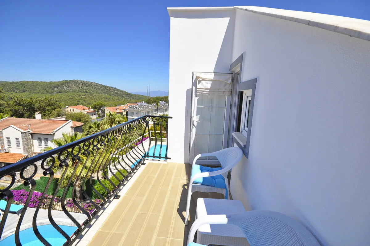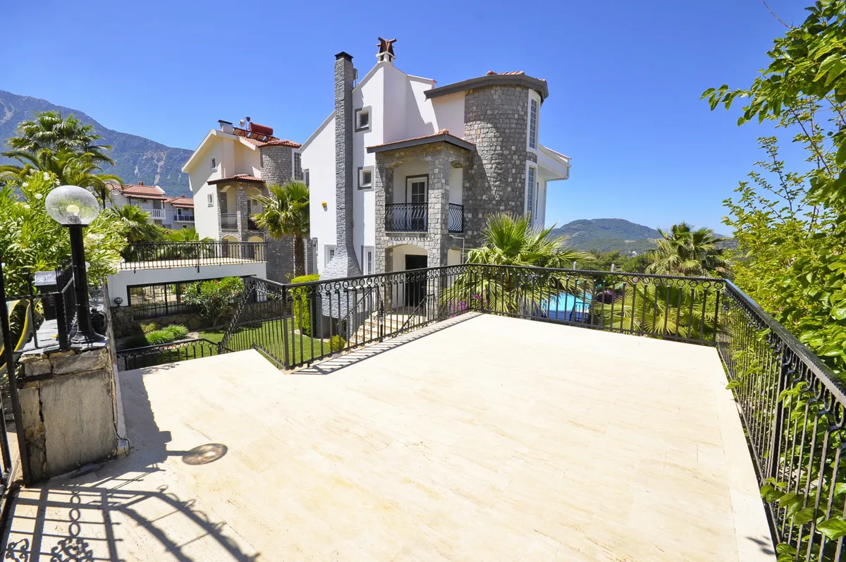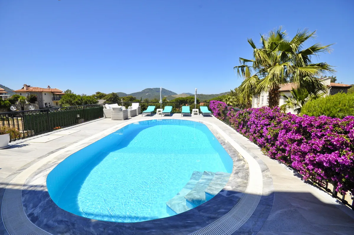 Located in the highly desirable Ovacik area, the villa sits within beautifully landscaped private gardens and features a large private swimming pool, spacious terraces, and charming outdoor living areas.
