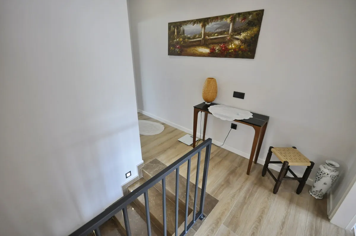 Second Floor: Entrance hallway , Family bathroom with utility area , Under-stairs storage , Fourth bedroom (currently used as a home office) with balcony , Spacious open-plan living room and modern kitchen , Large front terrace with panoramic sea views.