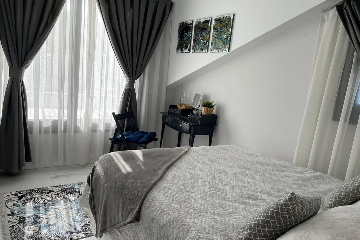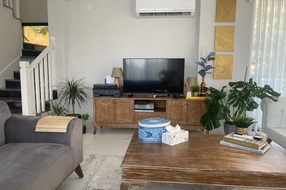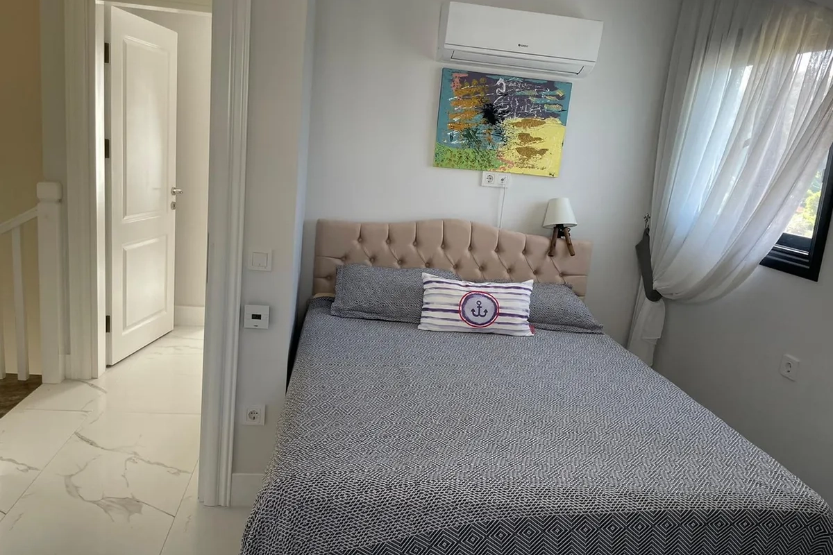 Spanning three floors, the villa comprises four generously sized bedrooms, each with its own en-suite bathroom and private balcony, perfectly positioned to capture breathtaking sea views. The bright and airy living room is designed as an open, welcoming space, seamlessly connecting to the outdoors through large sliding glass doors.