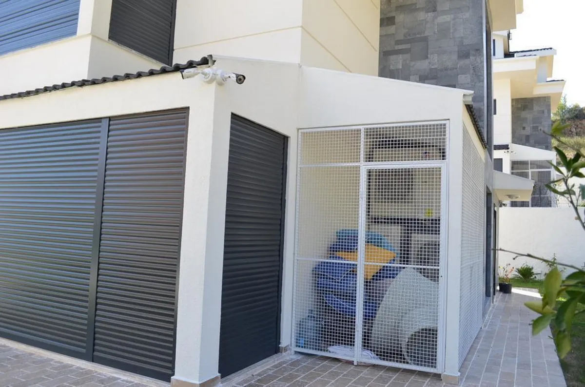 Throughout the villa, marble flooring, underfloor heating infrastructure, and aluminium double-glazed windows with electric shutters reflect the high construction standards and attention to detail.