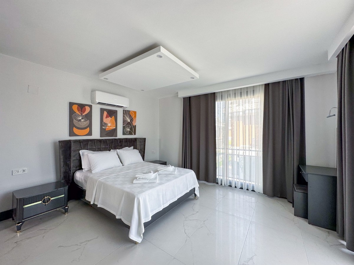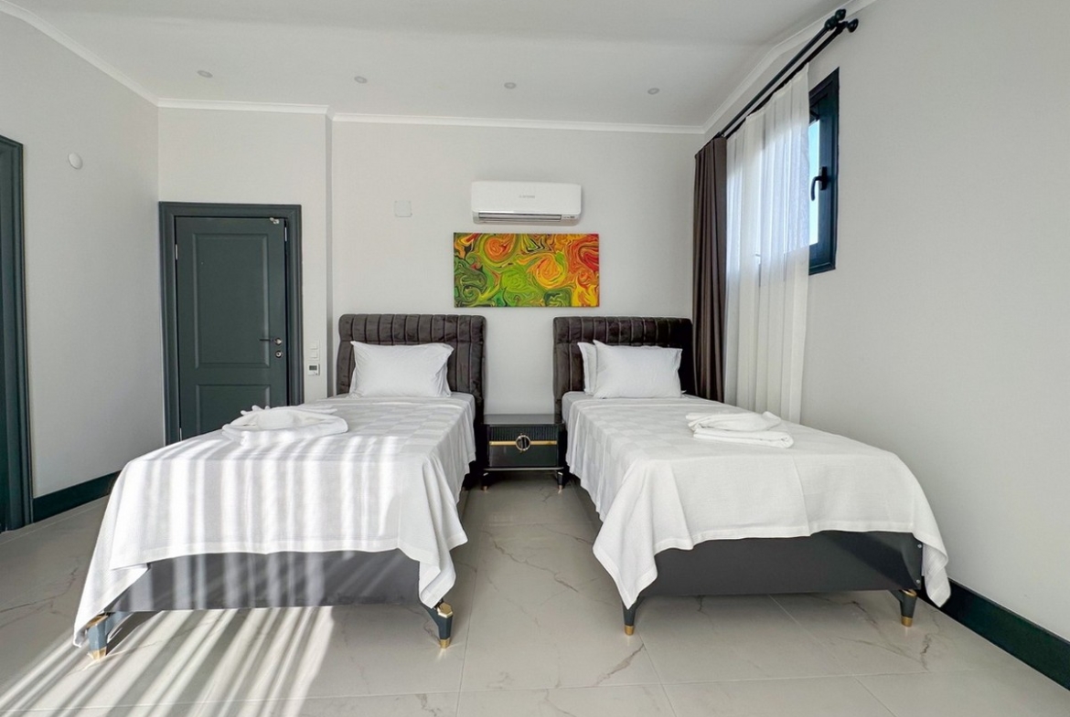 Located in the peaceful residential area of Çiftlik, just a short drive from Çalış Beach and Fethiye, this exclusive project consists of 17 detached luxury villas, each set on its own private plot of approx. 460 m² with an internal living space of 245 m². Perfectly blending modern architecture with comfort, these villas are ideal both as a permanent residence and a high-rental-yield holiday home.