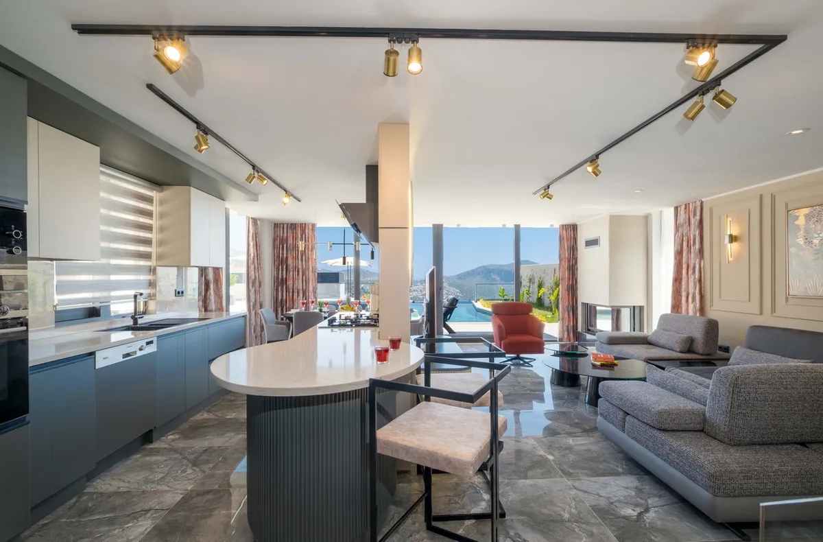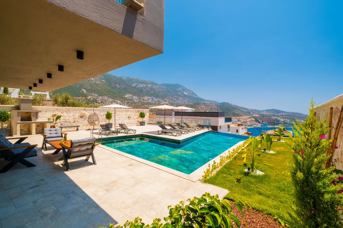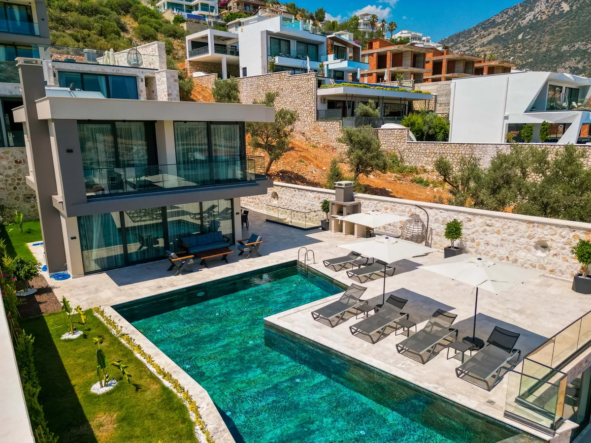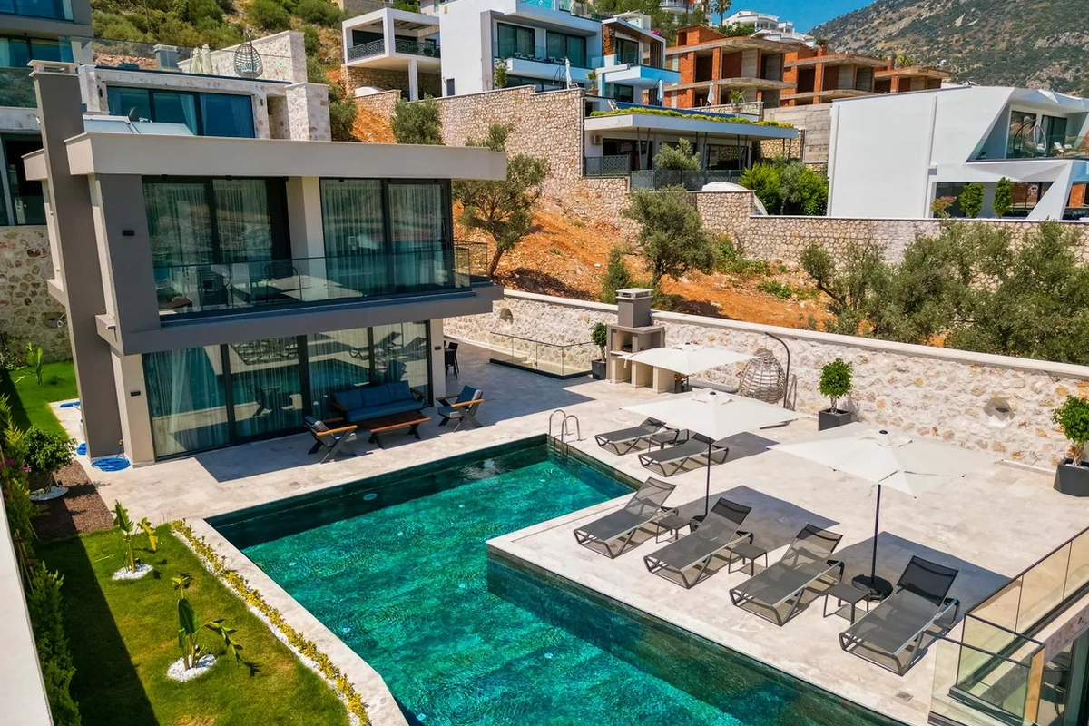 This exquisite detached villa is located in the heart of Kalkan’s prestigious Ortaalan district, just a short walk from the town center and Kalkan’s picturesque harbor. Designed for discerning buyers seeking a luxurious Mediterranean lifestyle, this property combines elegant architecture with high-end features and uninterrupted sea views from almost every corner.