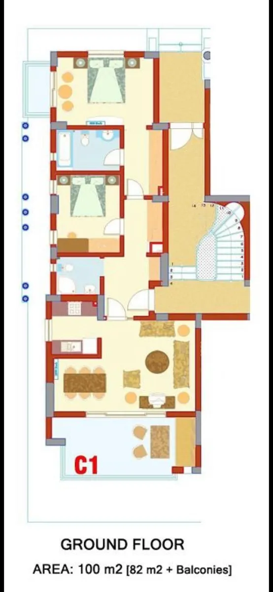 - Retractable sun blinds on the balcony for shade and comfort