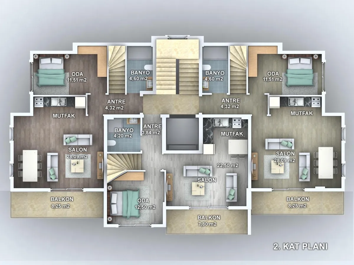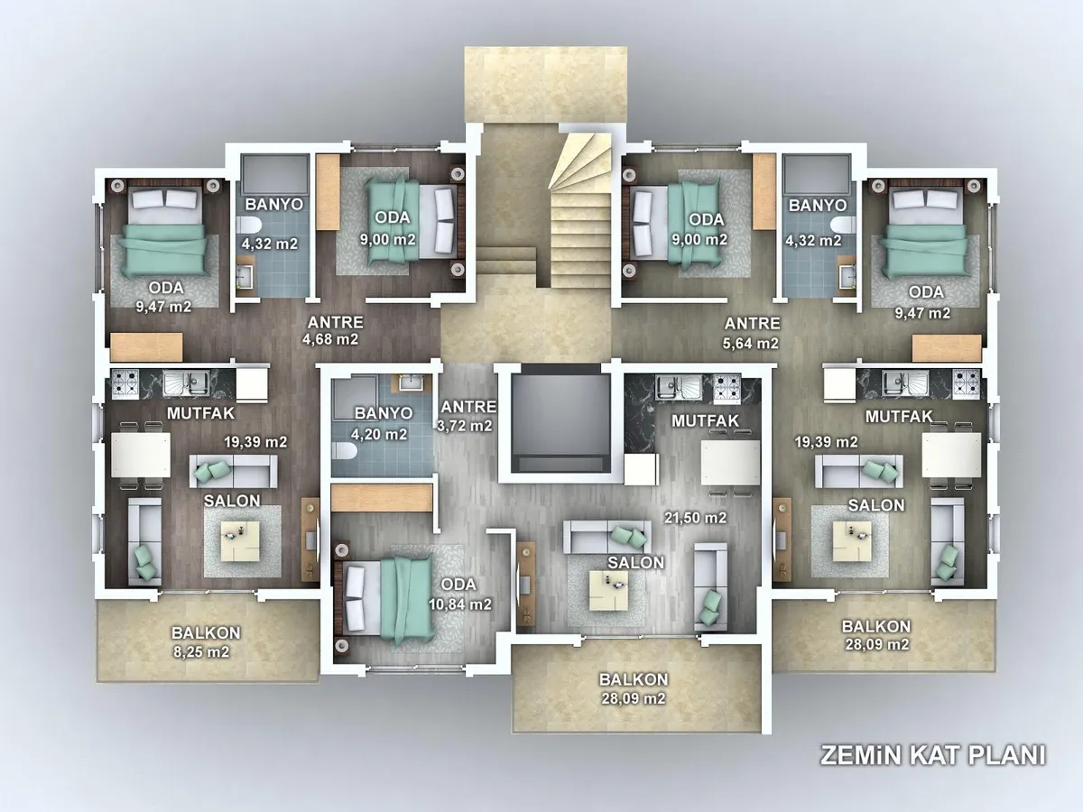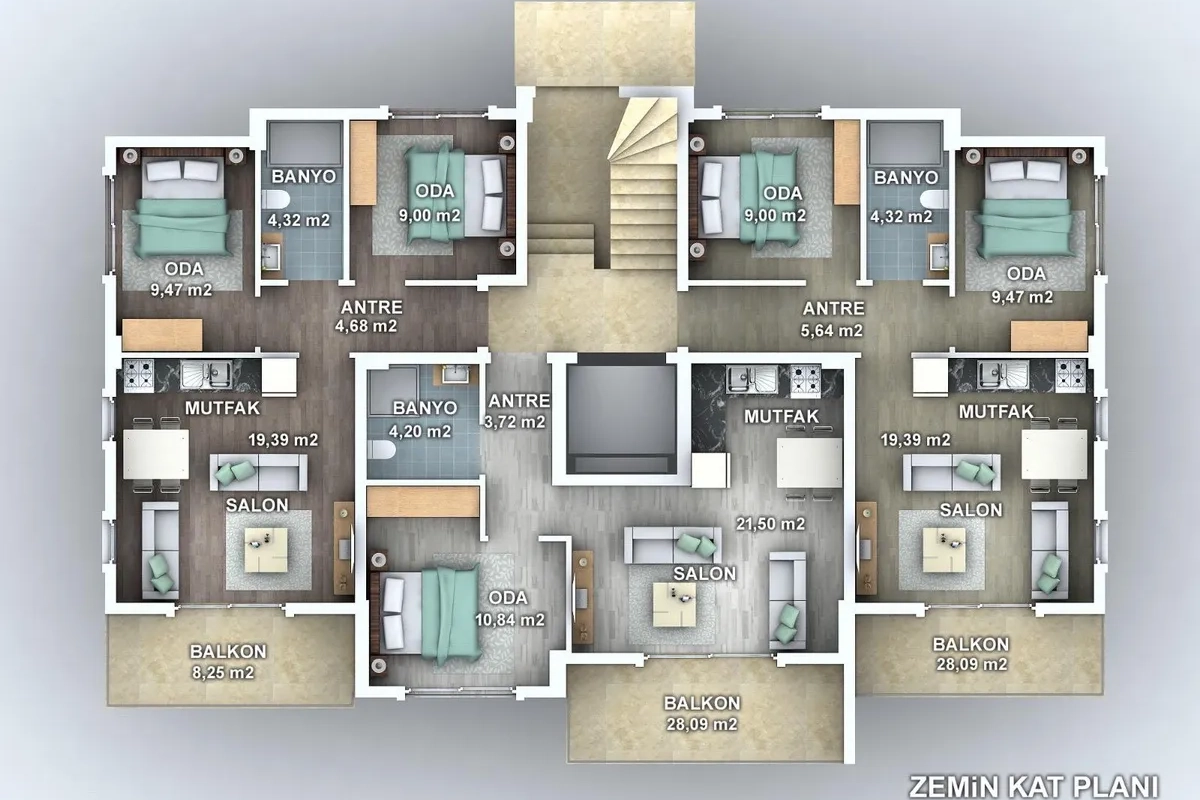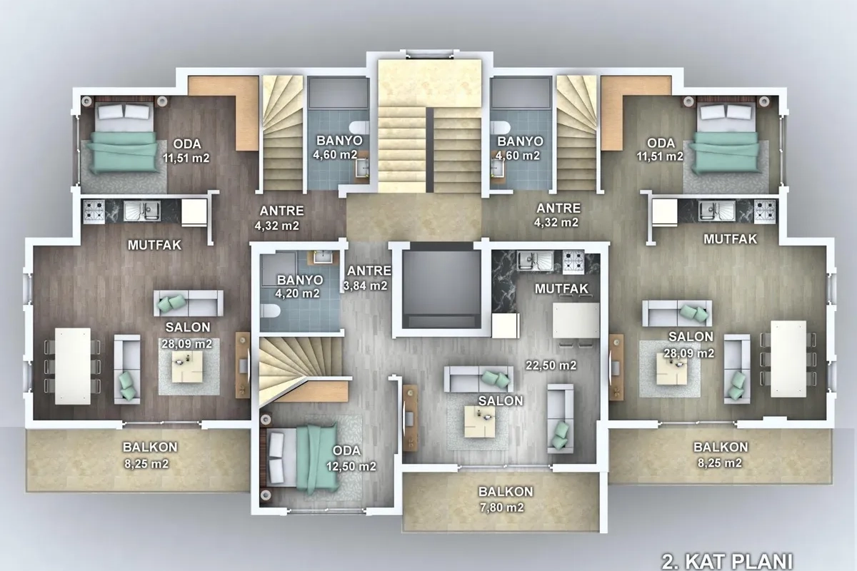 - 3 Bedroom Duplex Apartments: ₺11,000,000 (middle) – ₺12,000,000 (corner) (Ref: PT-6128)