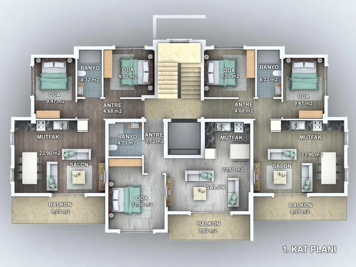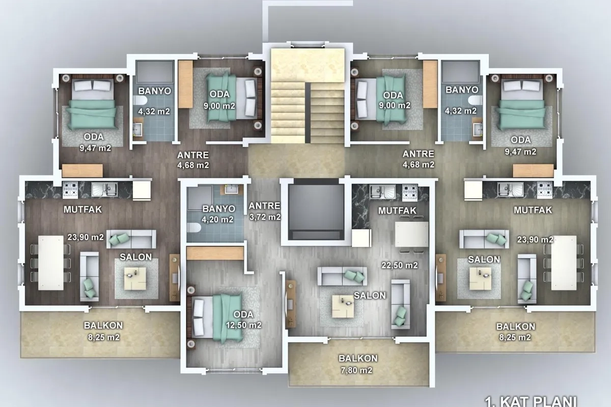 - 1 Bedroom Apartments: ₺6,000,000 (ground floor) – ₺6,750,000 (first floor)