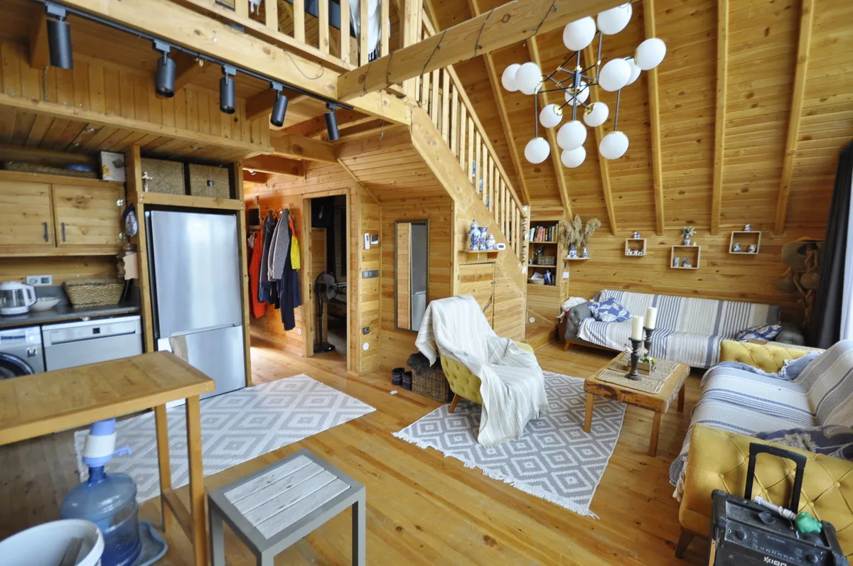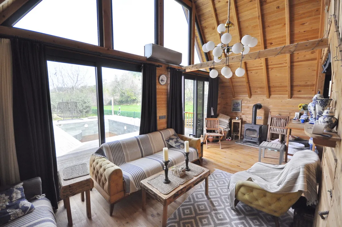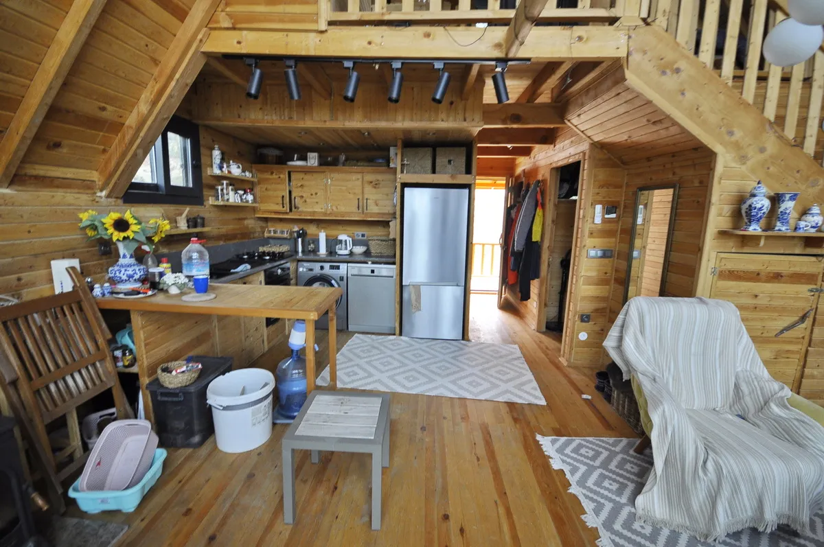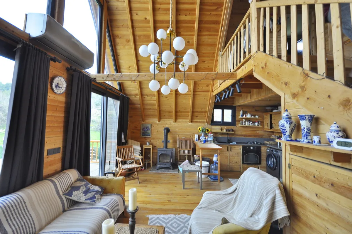 This unique wooden villa is an excellent choice for those dreaming of a simple, natural life with the comfort of modern amenities, surrounded by serene countryside views.