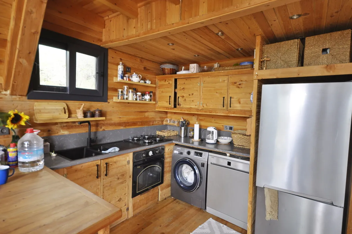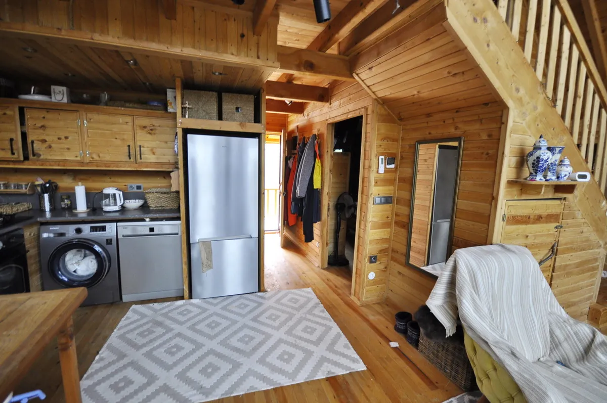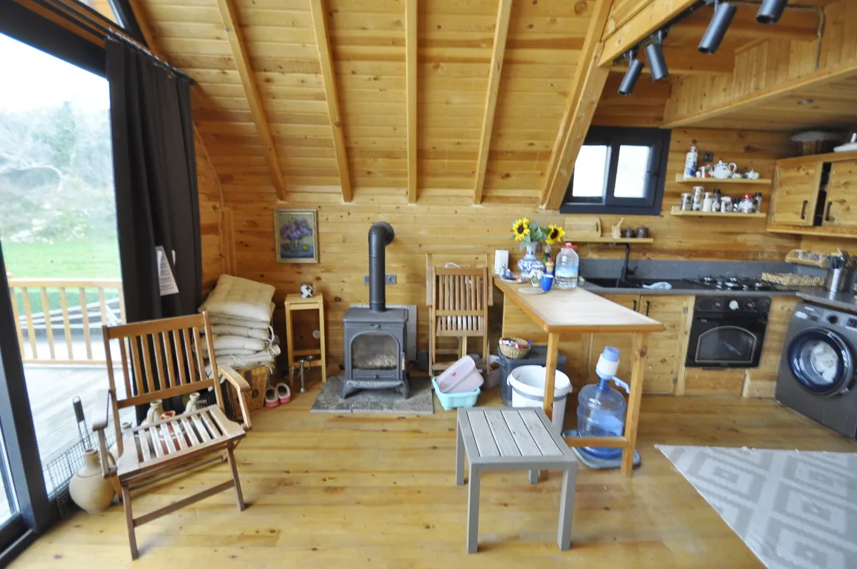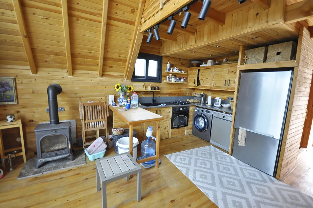 This unique wooden villa is an excellent choice for those dreaming of a simple, natural life with the comfort of modern amenities, surrounded by serene countryside views.