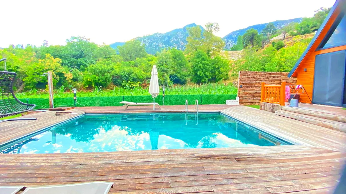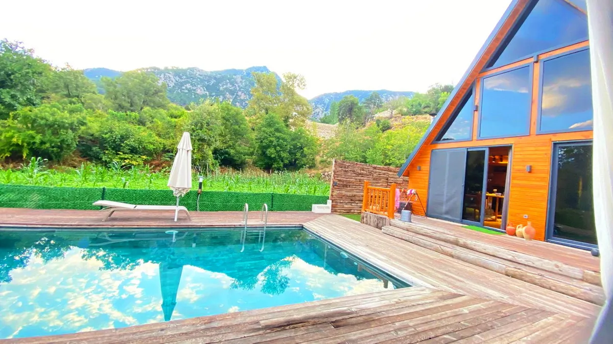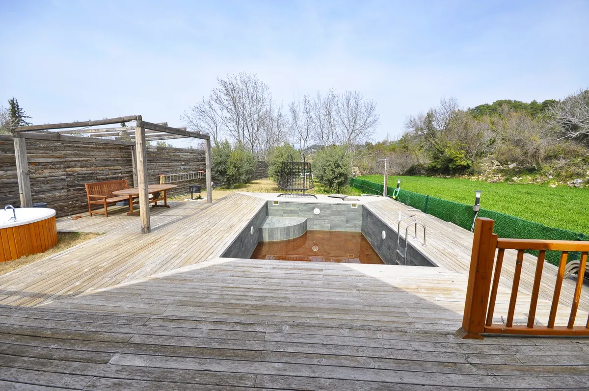 Set on a 616 m² private plot surrounded by olive and walnut trees, this charming 2+1 duplex wooden house in Yakaköy, Seydikemer offers tranquility and a natural lifestyle. The home features a private swimming pool, jacuzzi, and a cozy interior design – ideal for nature lovers and those seeking a quiet countryside retreat.