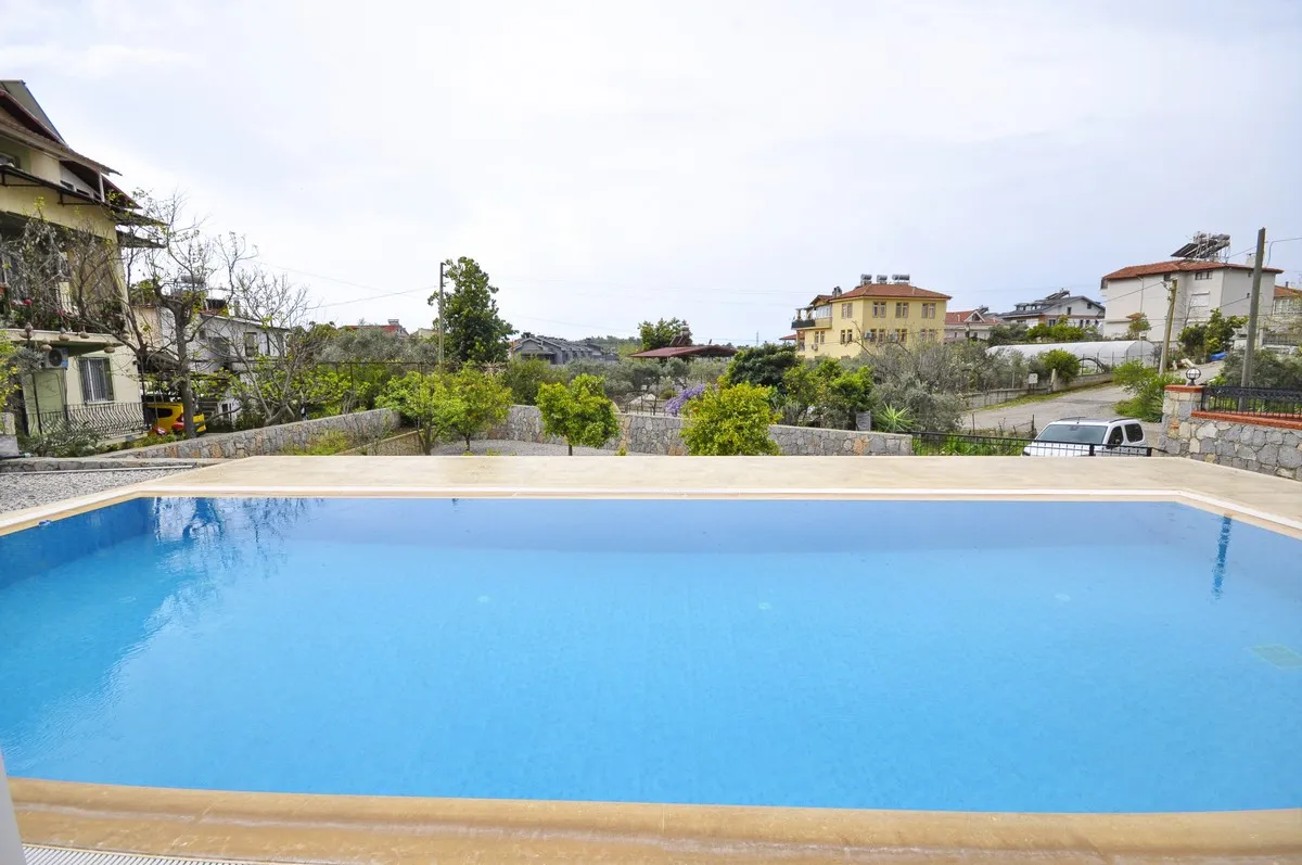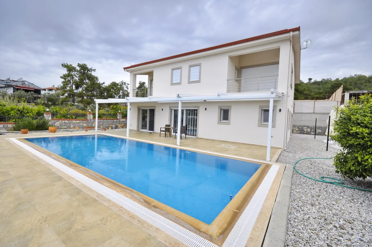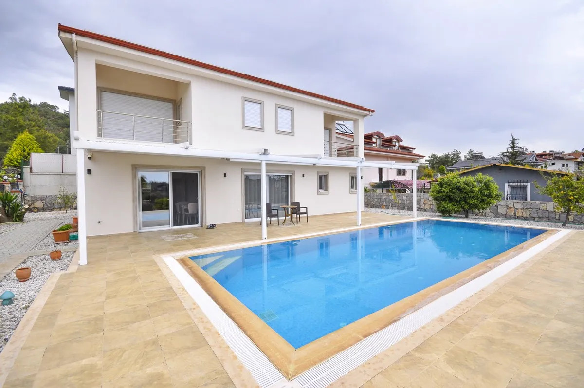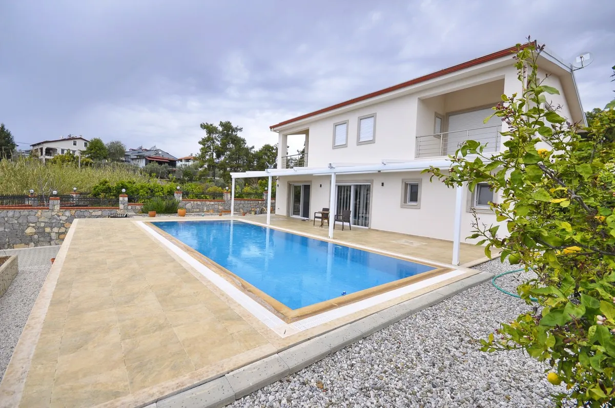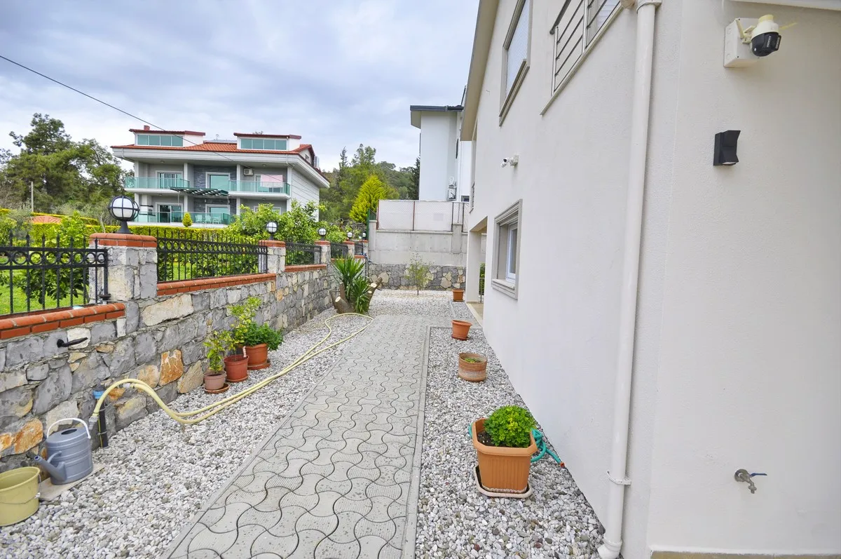 Located in the peaceful and green surroundings of Çiftlik, Fethiye, this detached villa stands out with its generous plot size and well-designed interior layout.