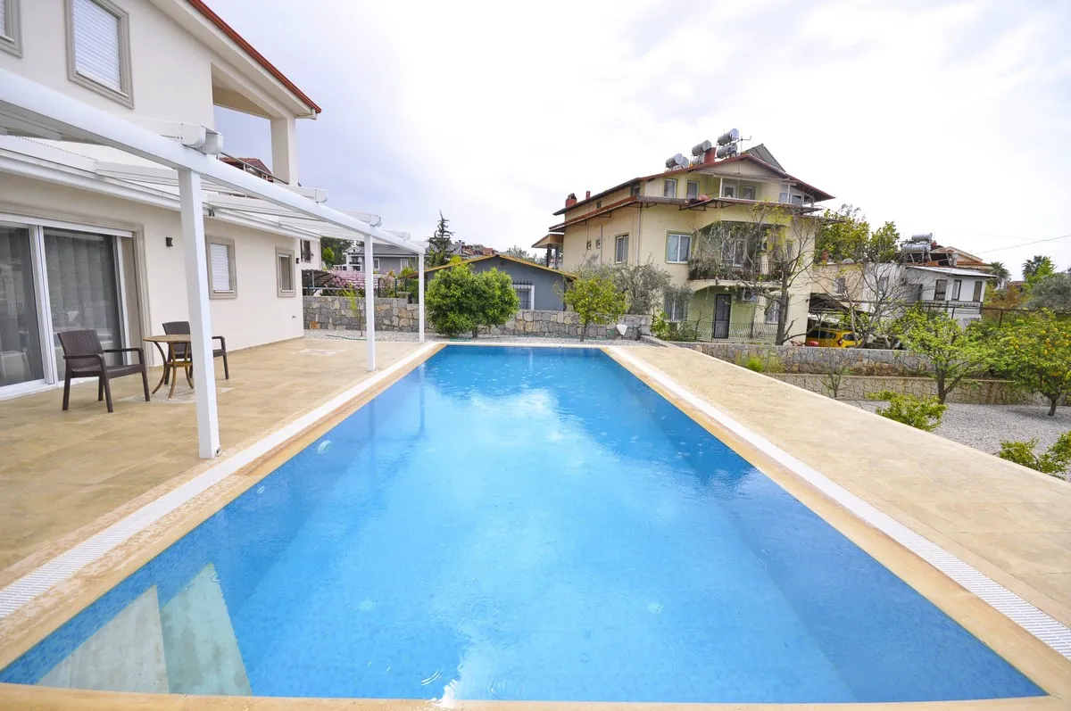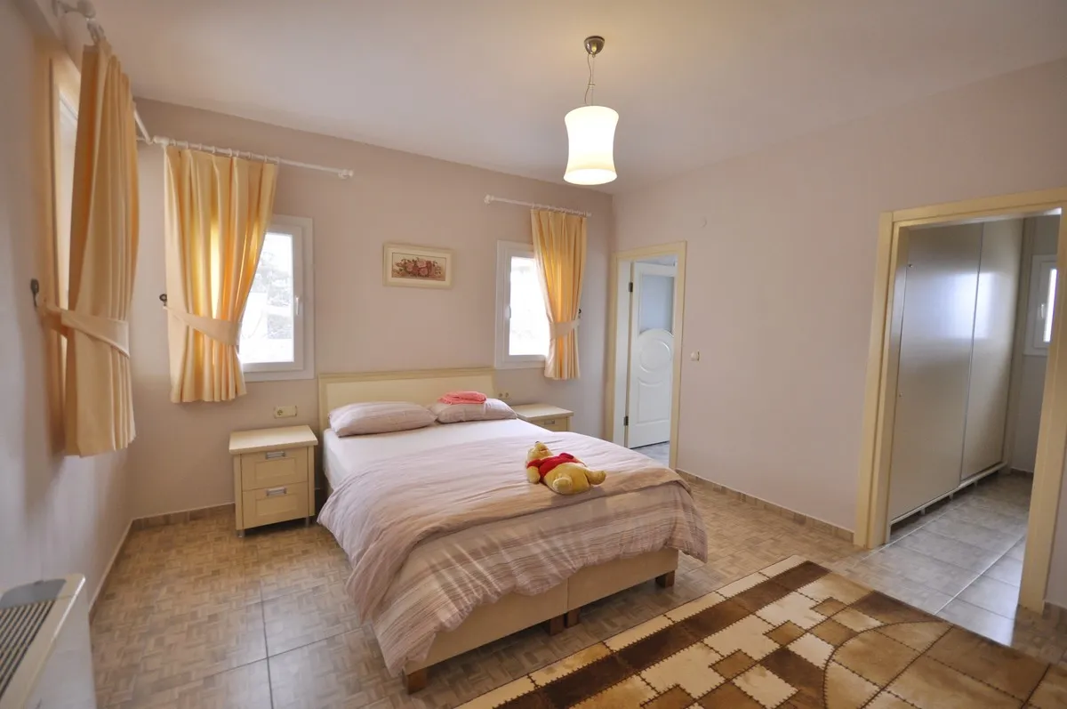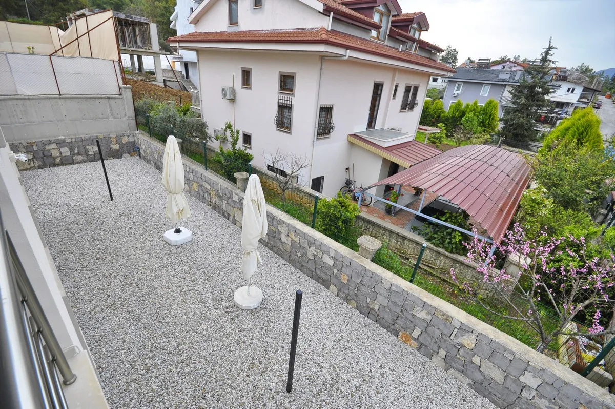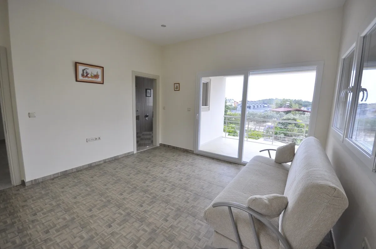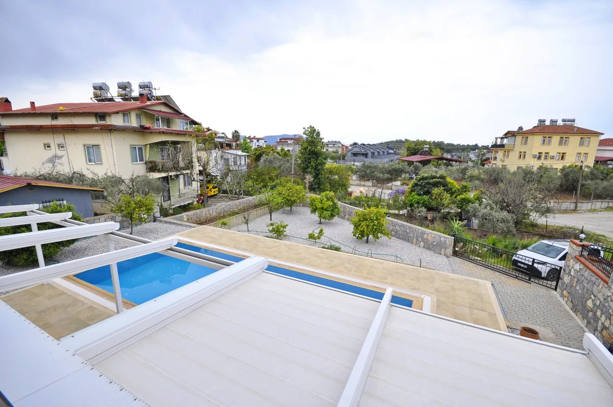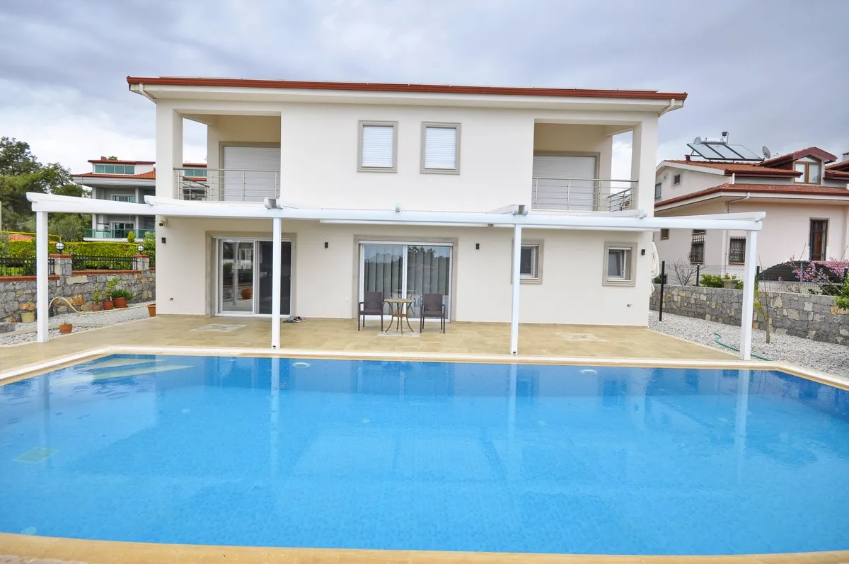 Located in the peaceful and green surroundings of Çiftlik, Fethiye, this detached villa stands out with its generous plot size and well-designed interior layout.