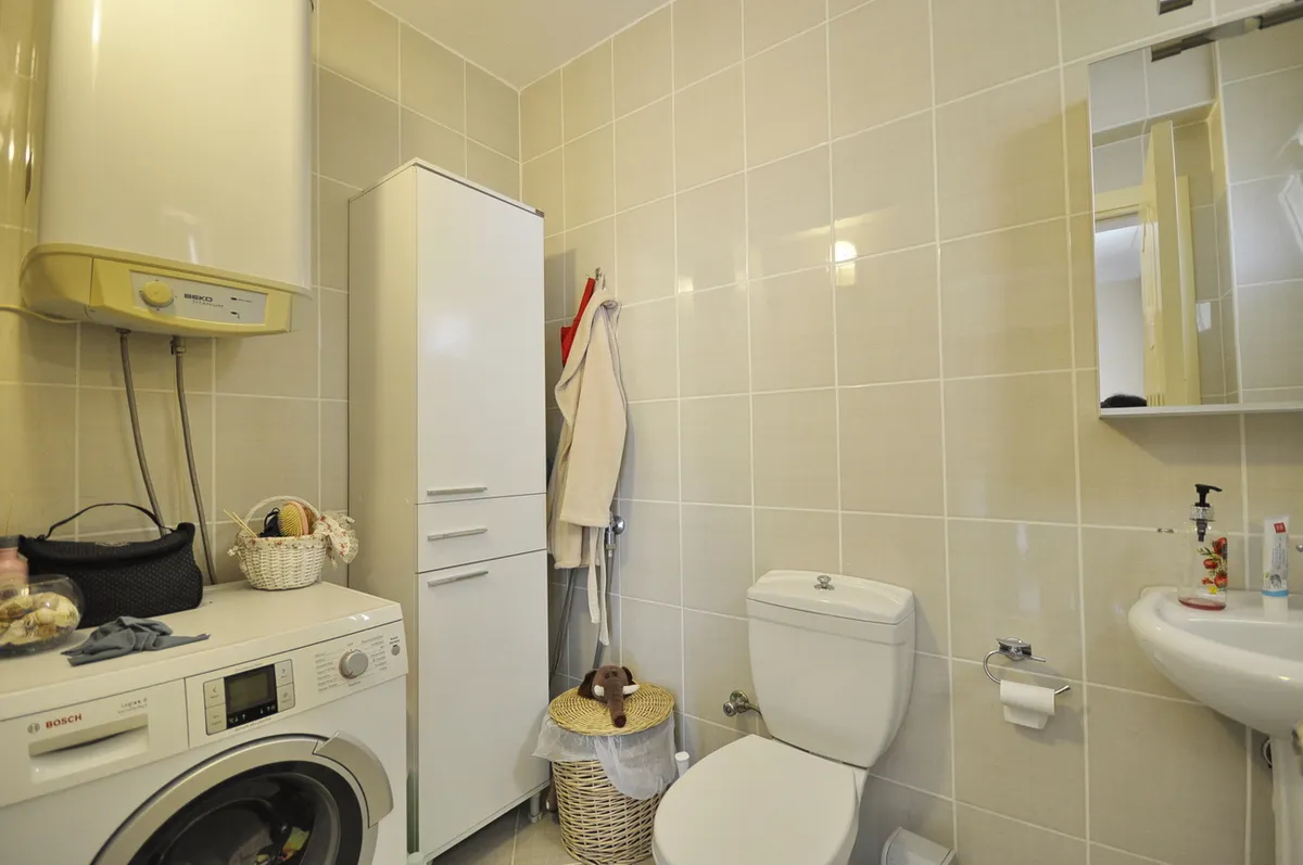 Situated on the second floor, the apartment opens into a welcoming hallway with practical under-stair storage. The bright and airy living room leads onto a front balcony overlooking the pool, creating a tranquil space to relax. A fully fitted kitchen and dining area, a family bathroom, a walk-in closet/storage cupboard, and three generously sized bedrooms complete this level.