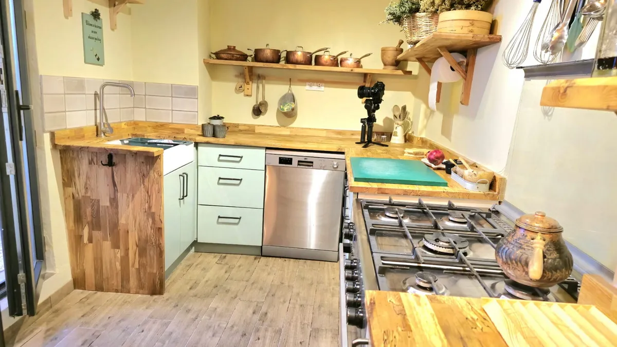 Ground Floor : Separate fitted kitchen , Bright living room with cast iron stove , Shared family bathroom , Private garden area