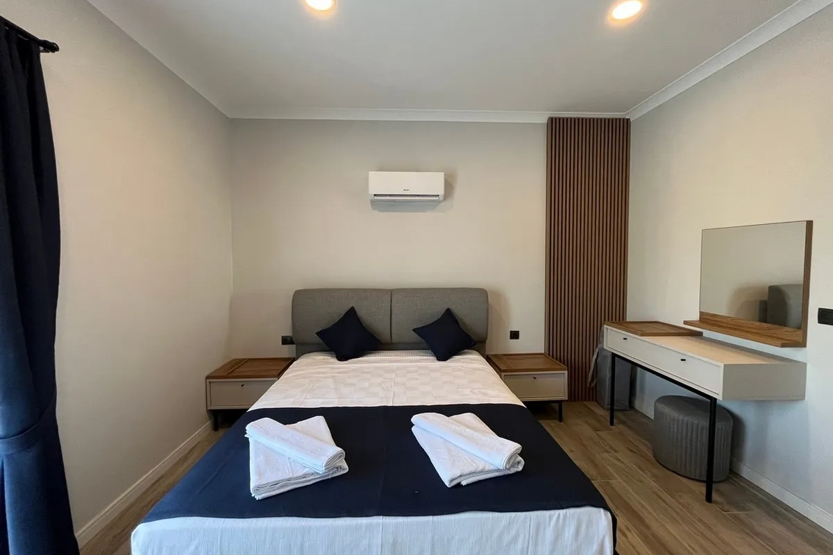 Комплекс расположен всего в 2 км от пляжа Чалыш и в 5 минутах езды от ресторанов, магазинов, госпиталя и воскресного рынка со свежими продуктами.
