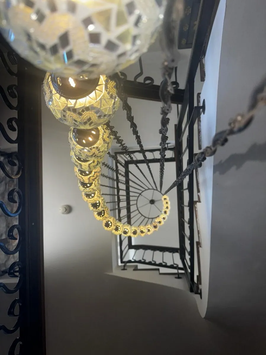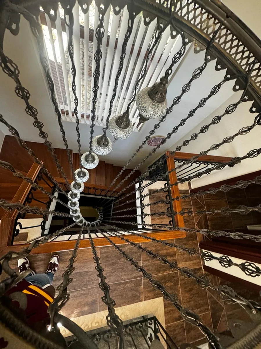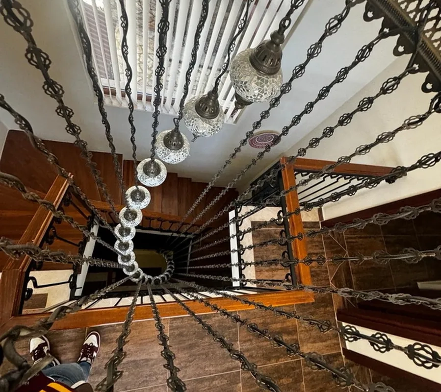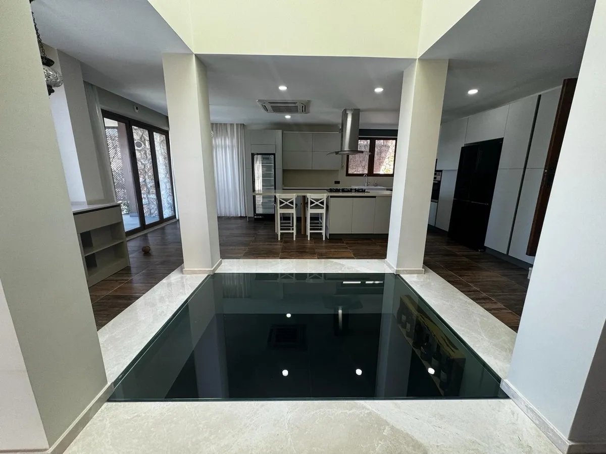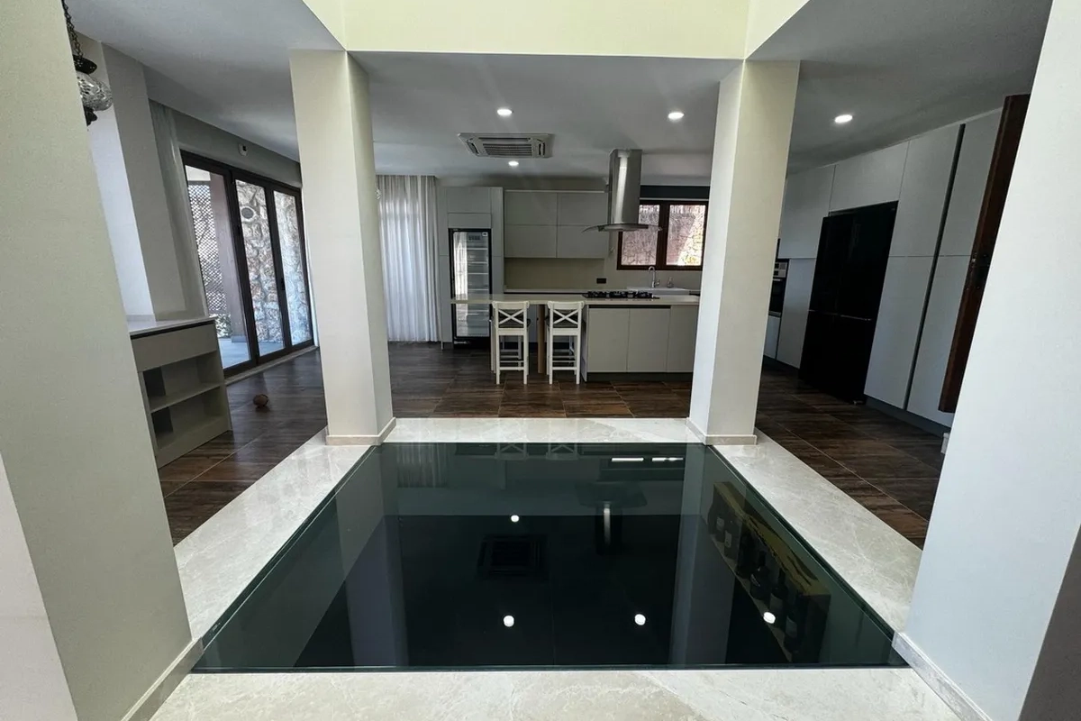 Архитектор спроектировал дом с акцентом на естественный свет и комфорт. Вилла украшена каменными стенами, стеклянным атриумом от пола до потолка и элегантным светильником, спускающимся по лестничной шахте.