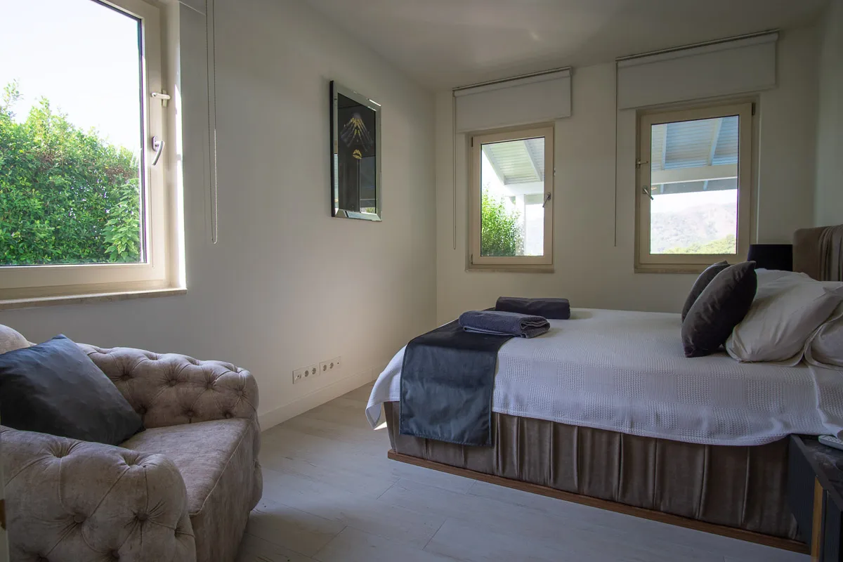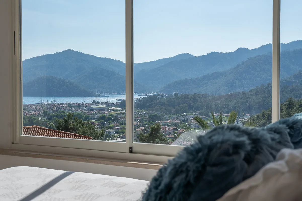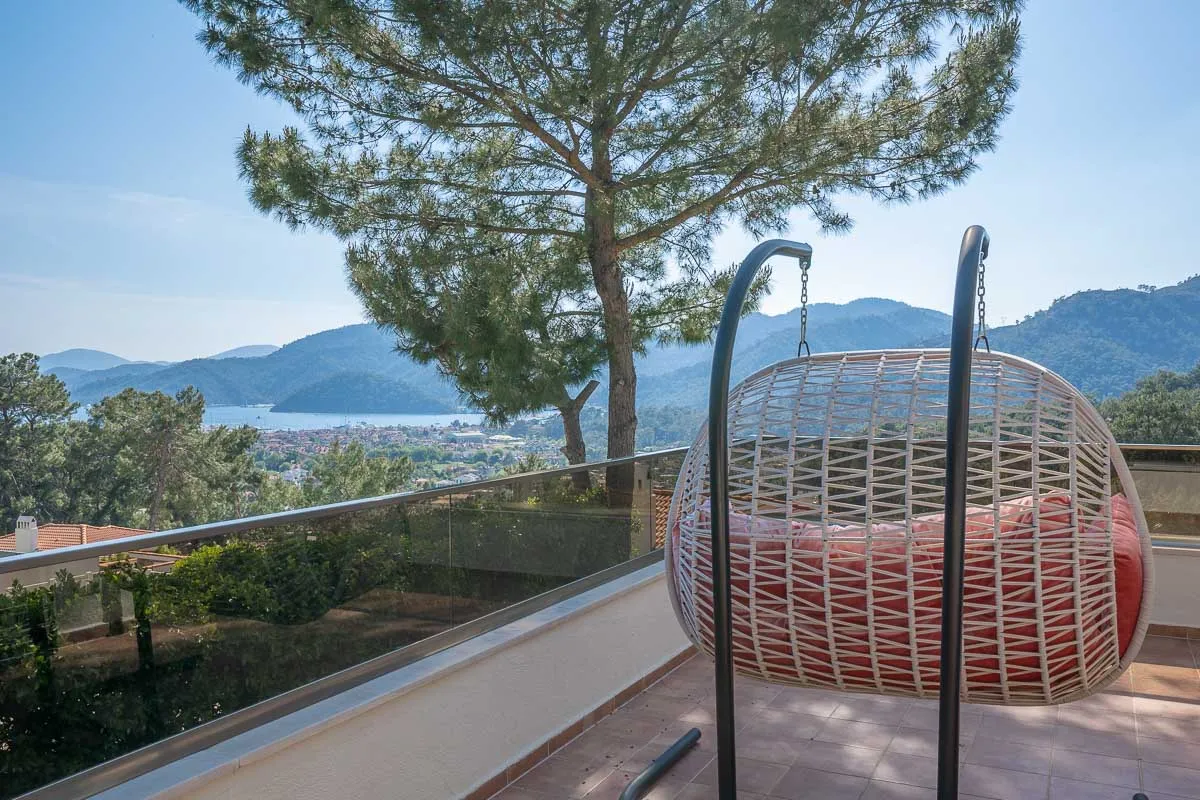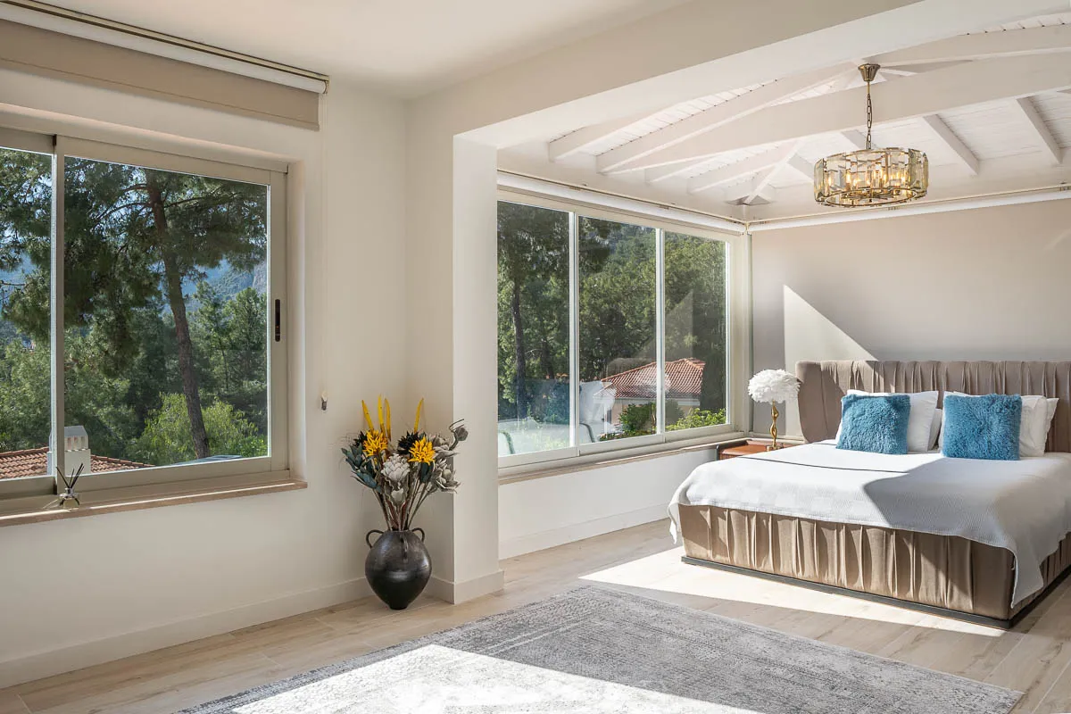 Эта элегантная вилла расположена на зеленых холмах Геджека, среди сосен, и сочетает в себе уединение, комфорт и захватывающий панорамный вид на море. На участке площадью 600 м² расположены 5 просторных спален, каждая с собственной ванной комнатой, а также частный бассейн, окруженный ухоженным садом.