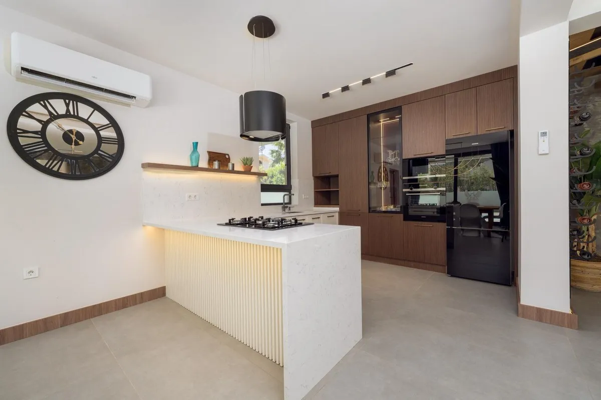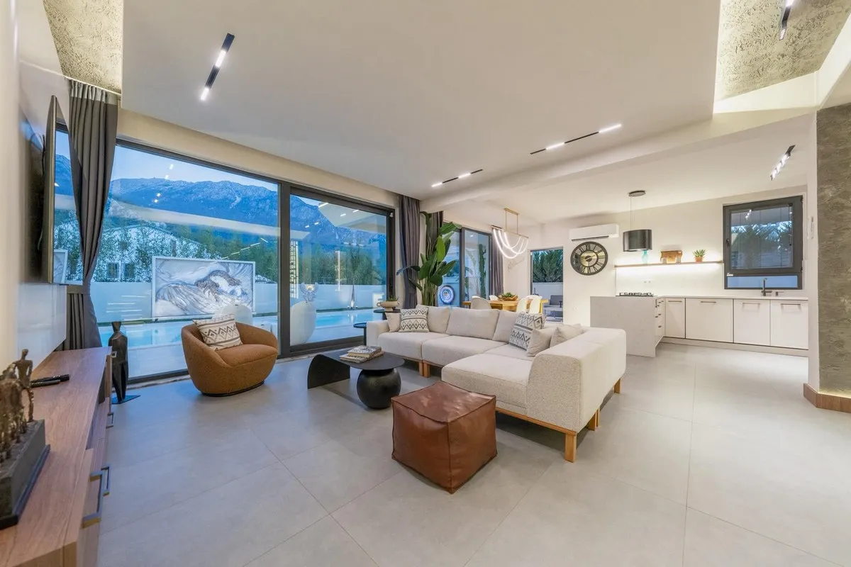 Эта современная вилла класса люкс, расположенная в престижном районе Оваджик (Фетхие), сочетает в себе элегантный архитектурный стиль, просторные помещения и изысканный комфорт. На участке площадью 645 м² располагаются основной дом и независимый гостевой дом, что обеспечивает уединение и удобство проживания.