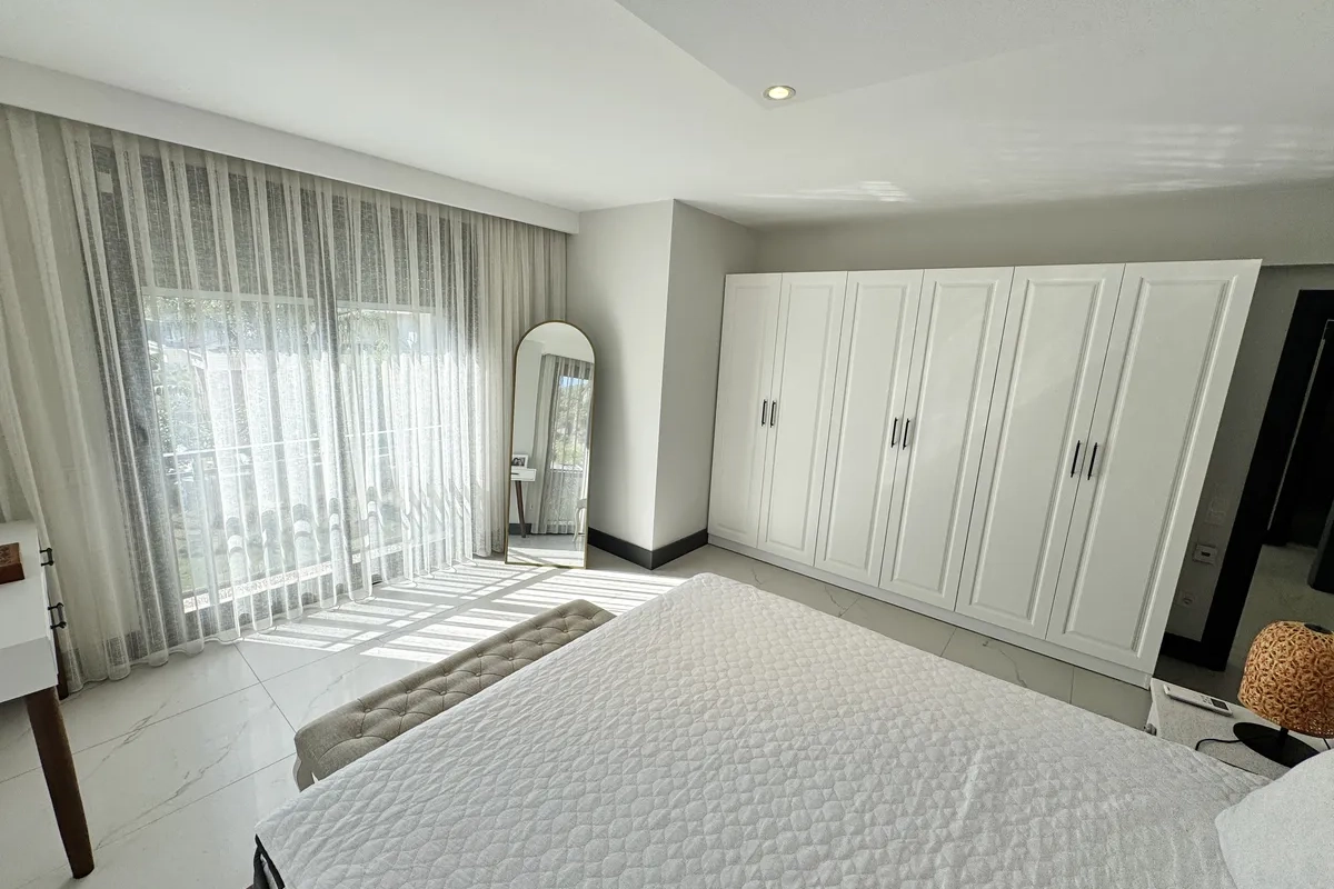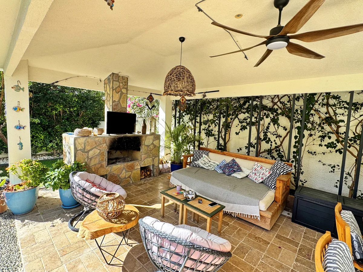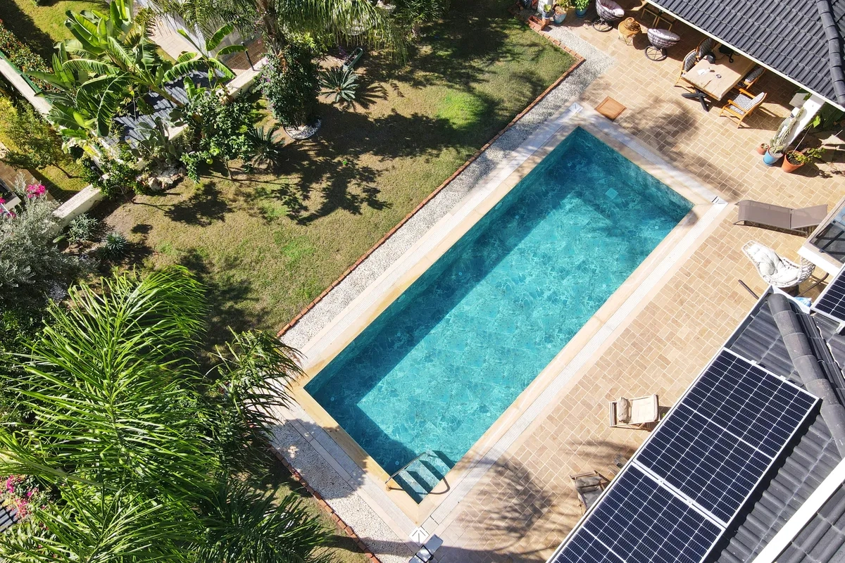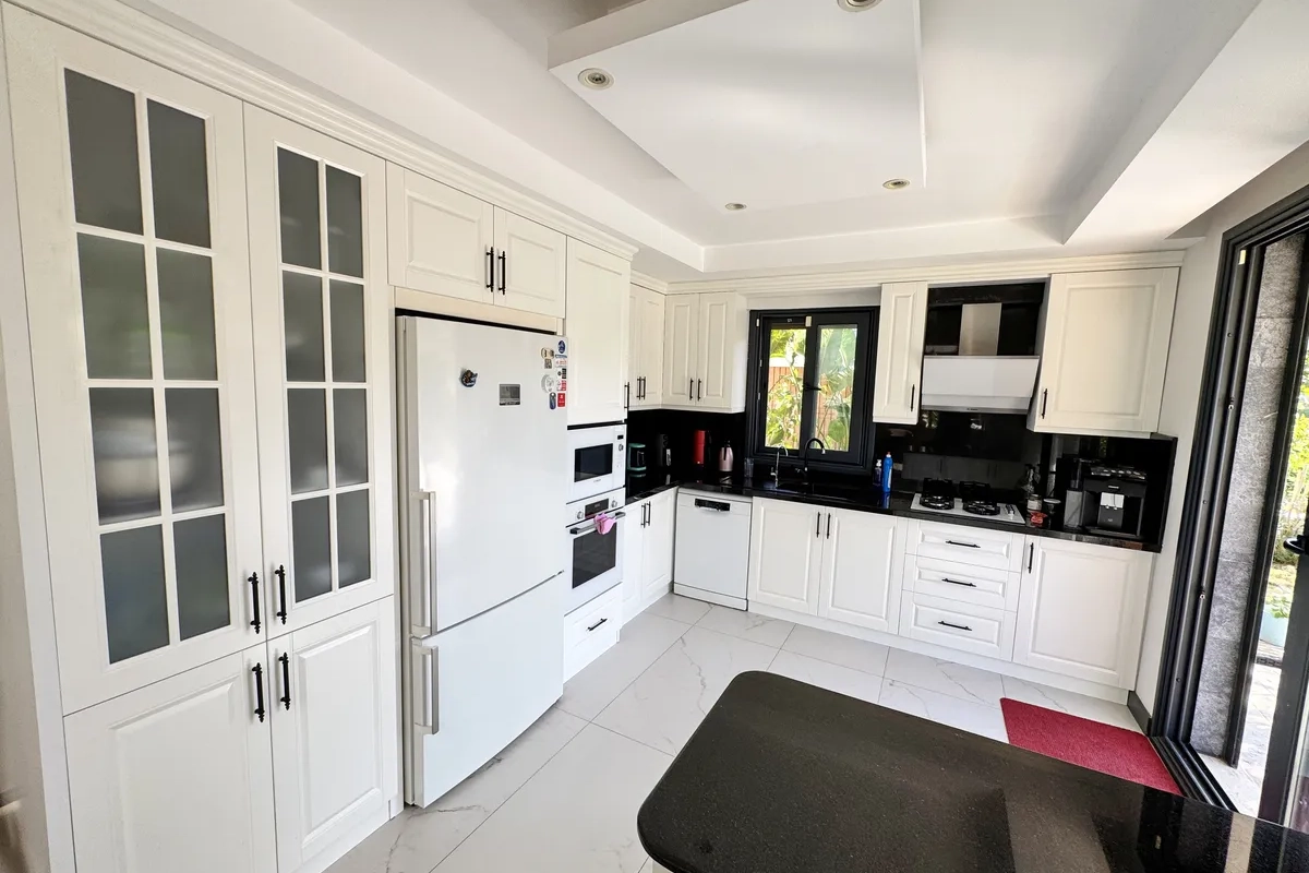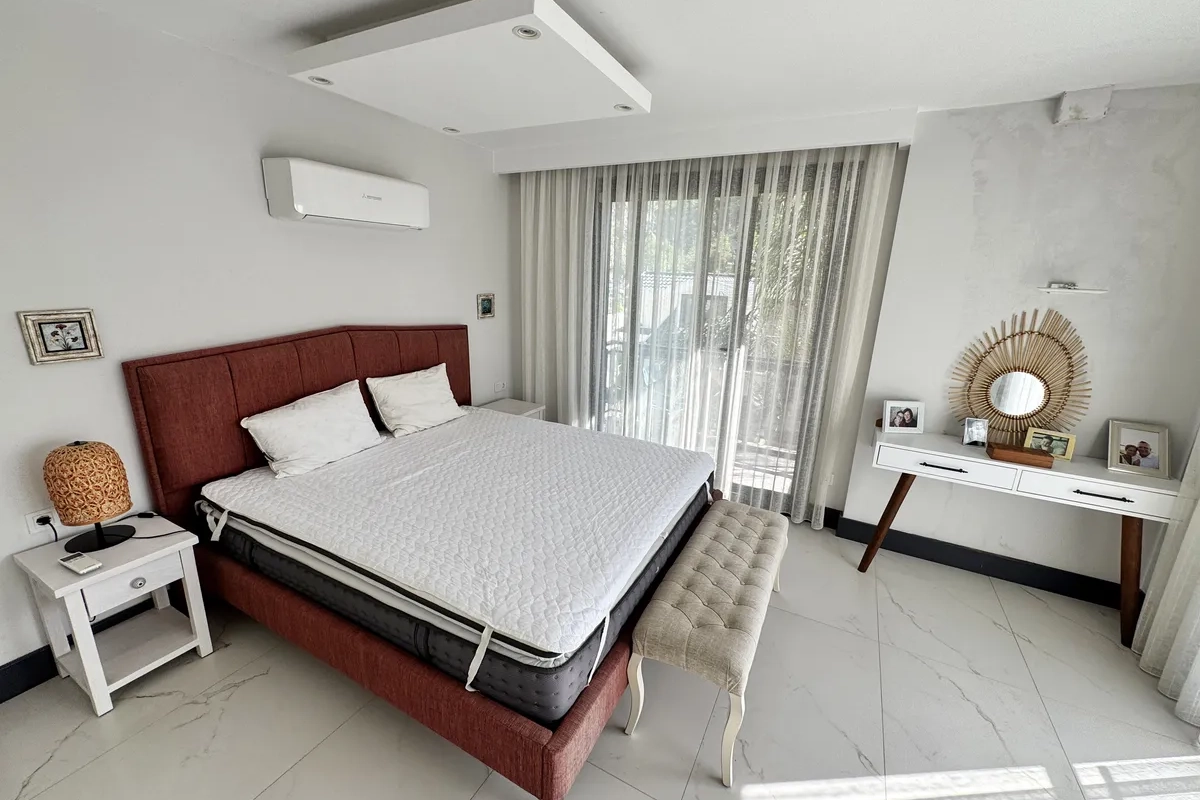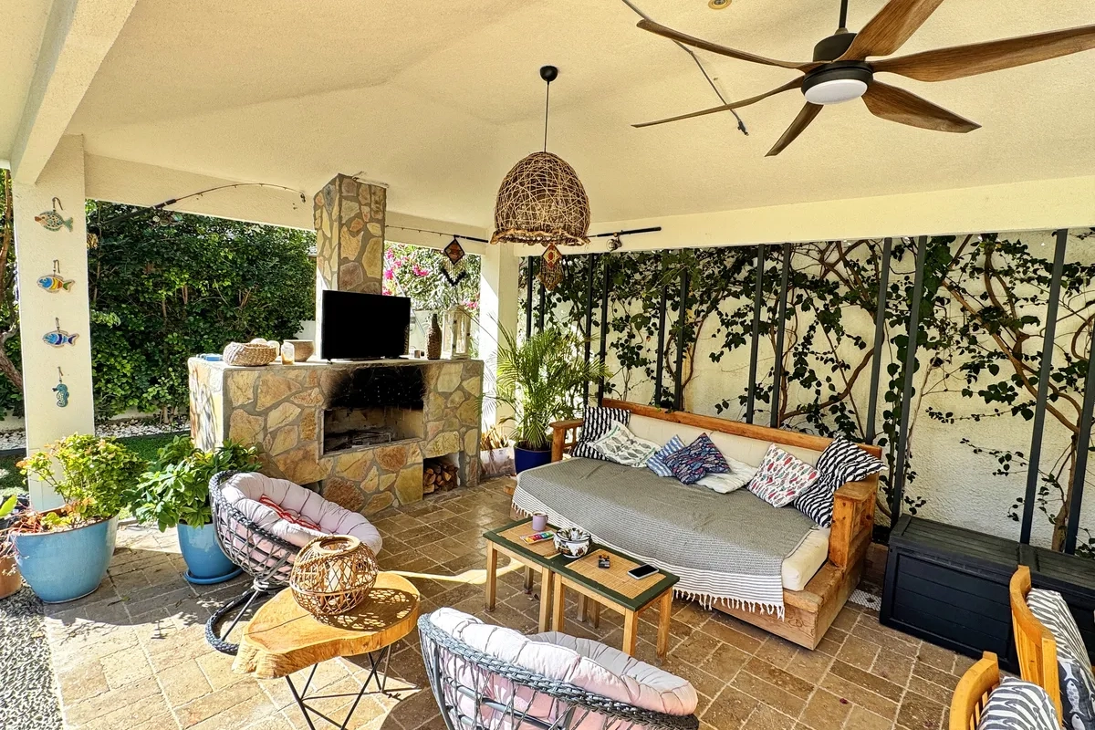 На территории виллы вас ждут: большой бассейн, зона для загара, каменный барбекю, летняя кухня с обеденной зоной, зона отдыха, кладовая и частная парковка.
