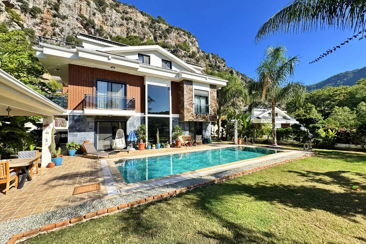 В живописном районе Гёджек (Фетхие), между зелёными сосновыми лесами и чарующим видом на залив Гёджек, расположена эта изысканная вилла на участке 570 м². Дом построен из высококачественных материалов с использованием первоклассных технологий строительства и сочетает в себе комфорт, стиль и гармонию с природой.