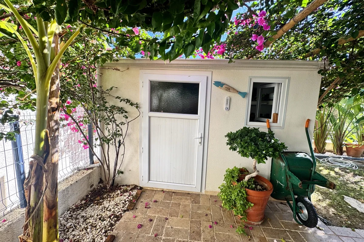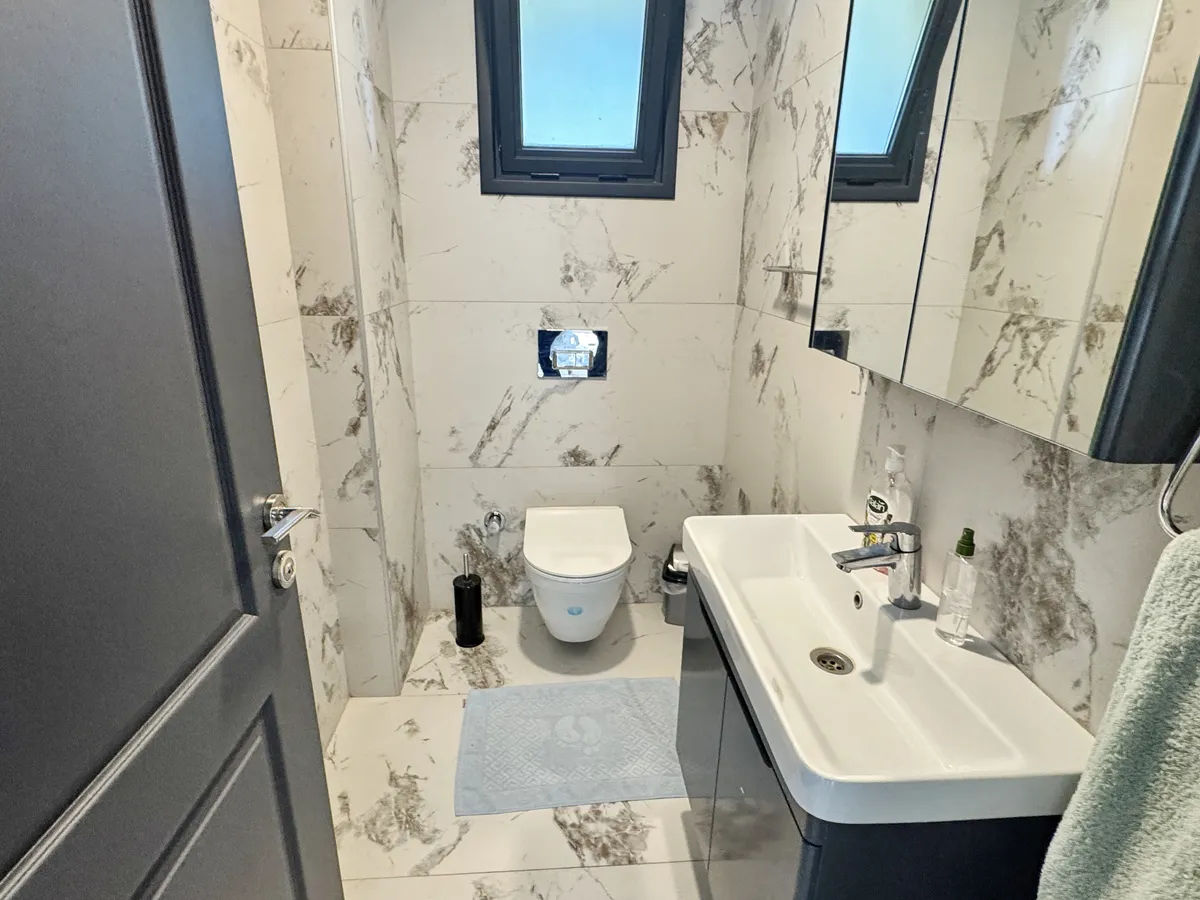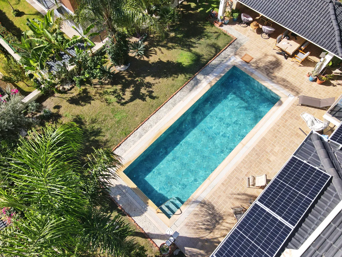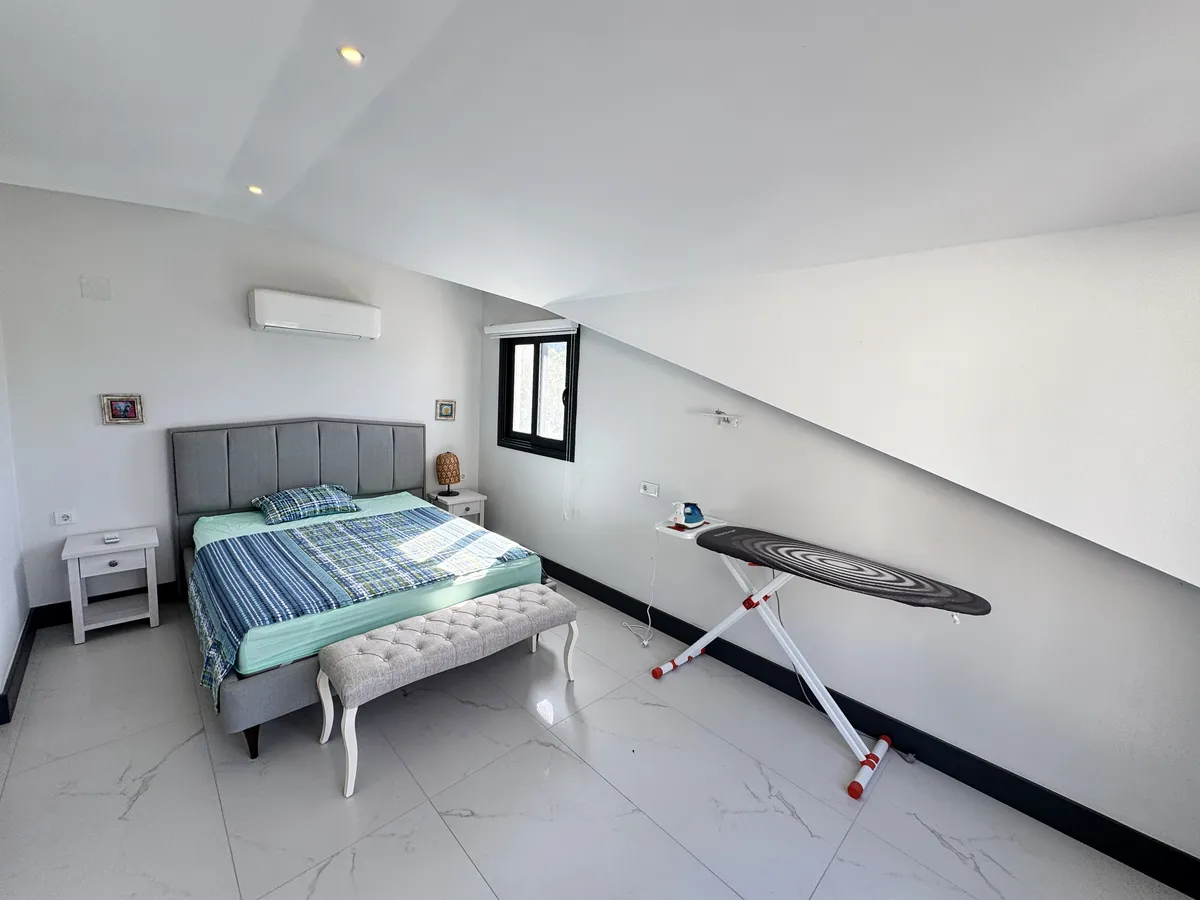 Вилла оснащена современными системами: сигнализацией, солнечными панелями для выработки электроэнергии, резервуаром для воды (1,5 тонны), фильтром для воды, тепловым насосом, солнечным подогревом воды, оптоволоконным интернетом, электрическими ставнями, двойными стеклопакетами и подсветкой лестниц.