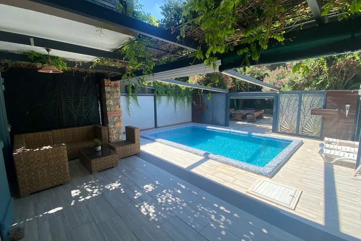 Эта полностью обновлённая, стильная вилла с 2 спальнями расположена в тихом и живописном районе Оваджик, Фетхие. С потрясающими видами на горы, частным садом и отапливаемым бассейном, она идеально подходит для постоянного проживания или длинного летнего отдыха.