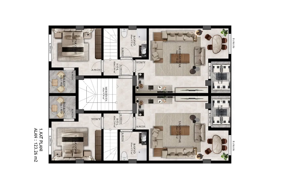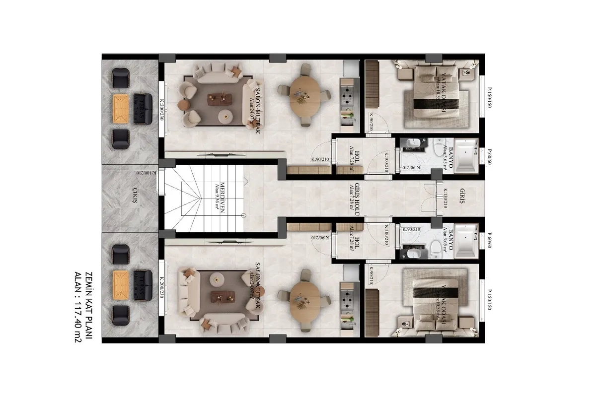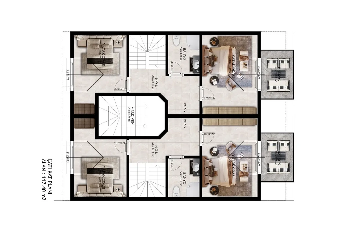Двухуровневая квартира 3+1 (90 м²) – 8 000 000 TL