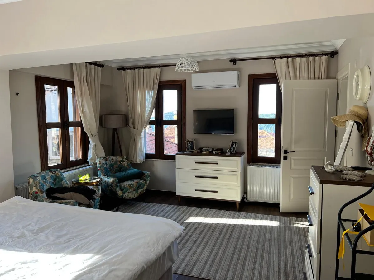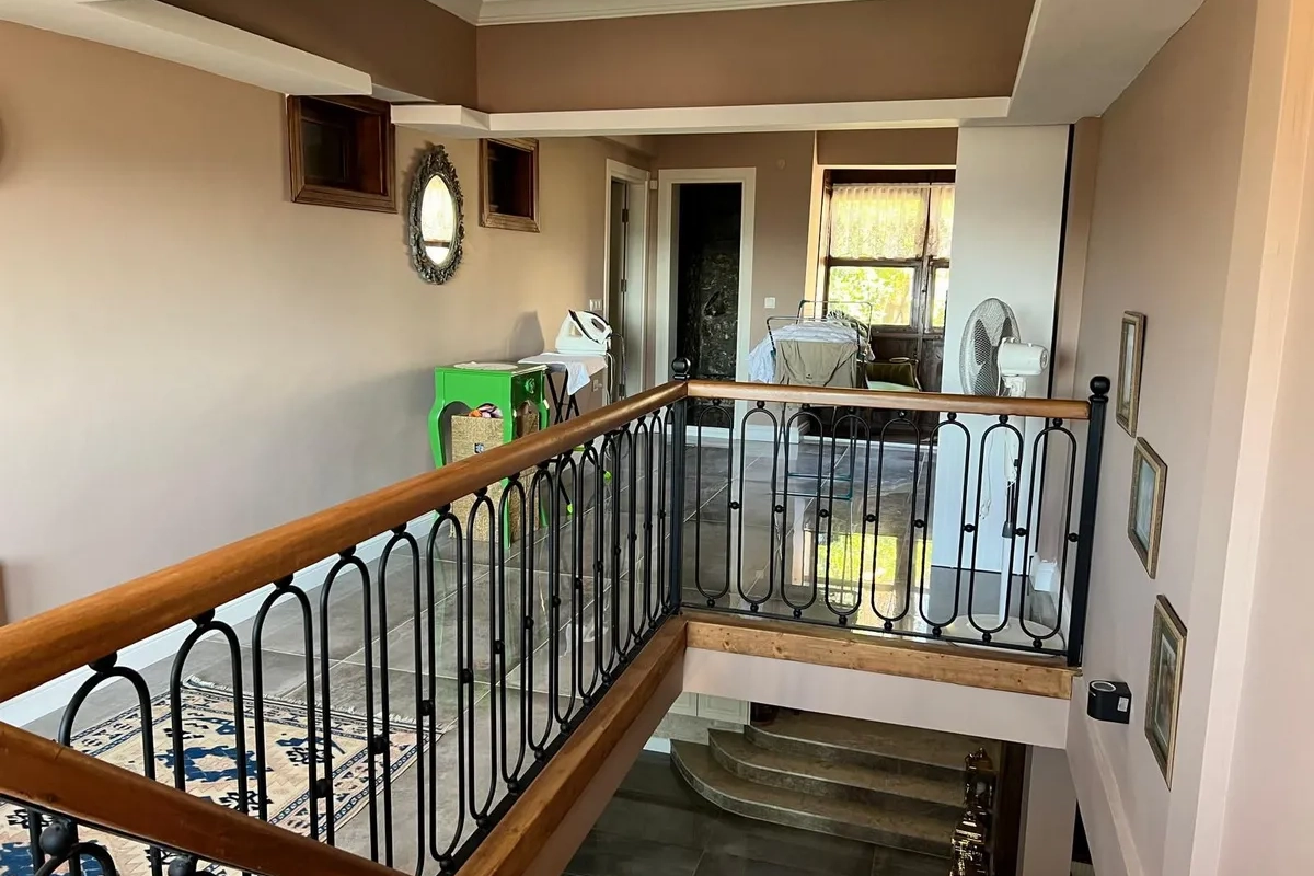 Дом состоит из двух этажей и включает 3 просторные спальни, каждая с собственной ванной комнатой. Главная спальня оборудована гардеробной, а две другие имеют уникальные камины.