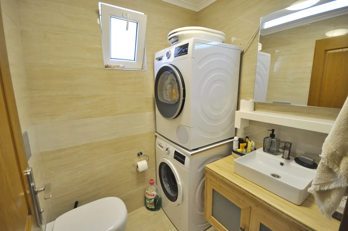Общая площадь виллы составляет 124 м², интерьер выполнен в современном и светлом стиле.