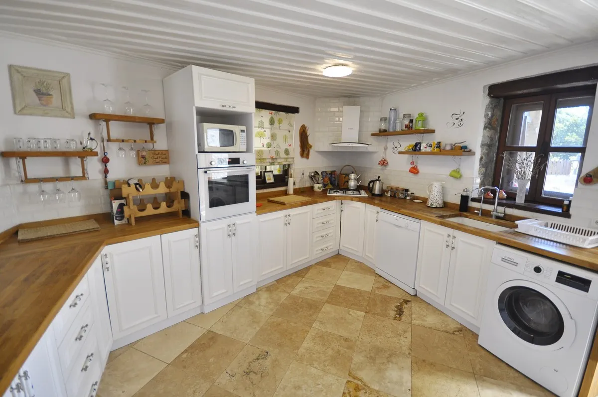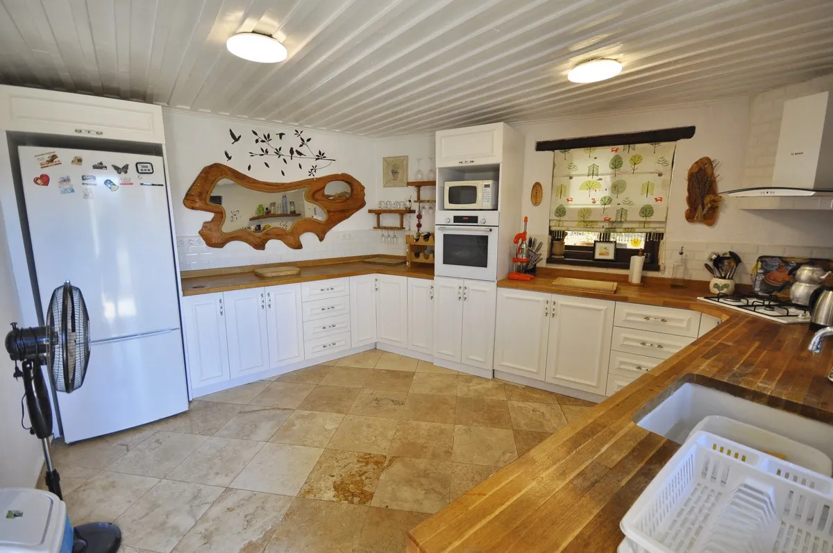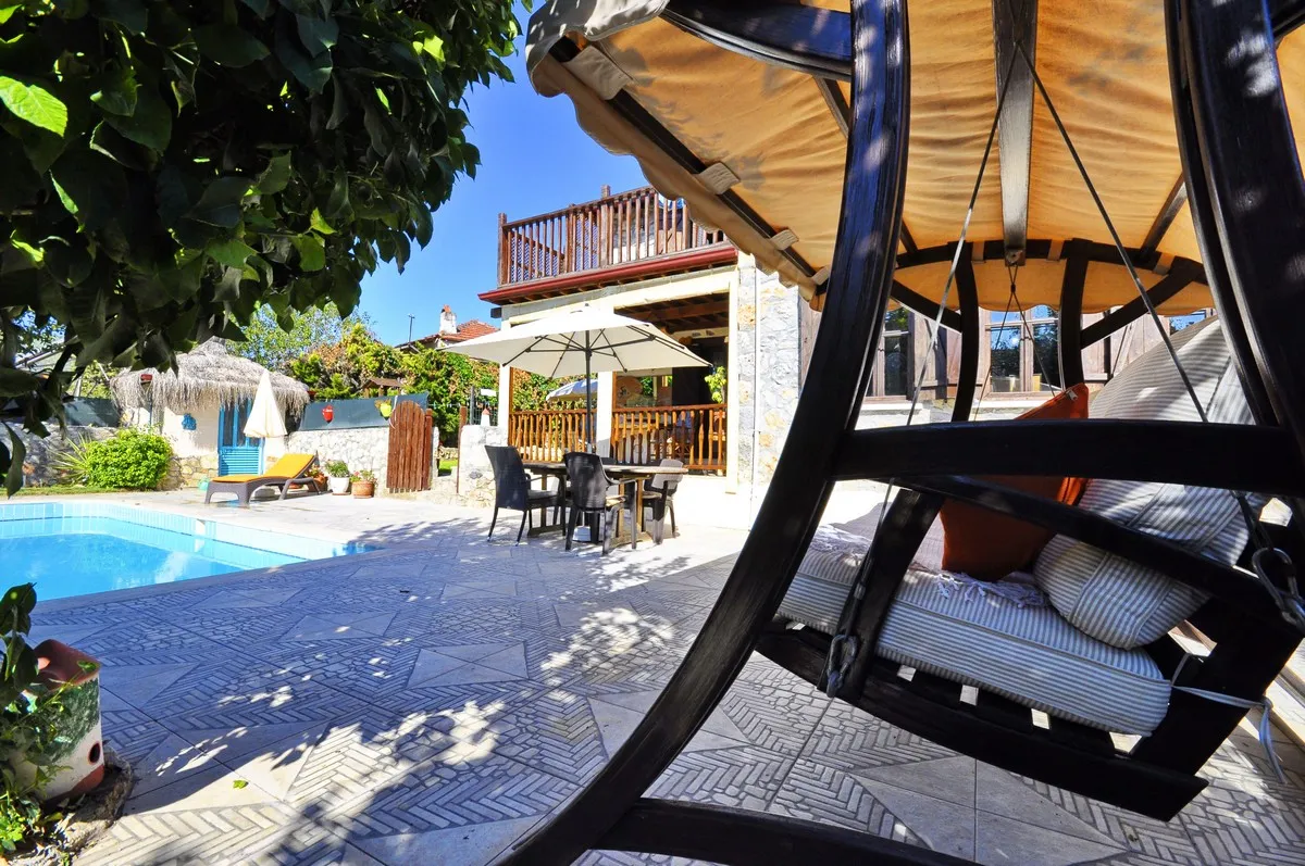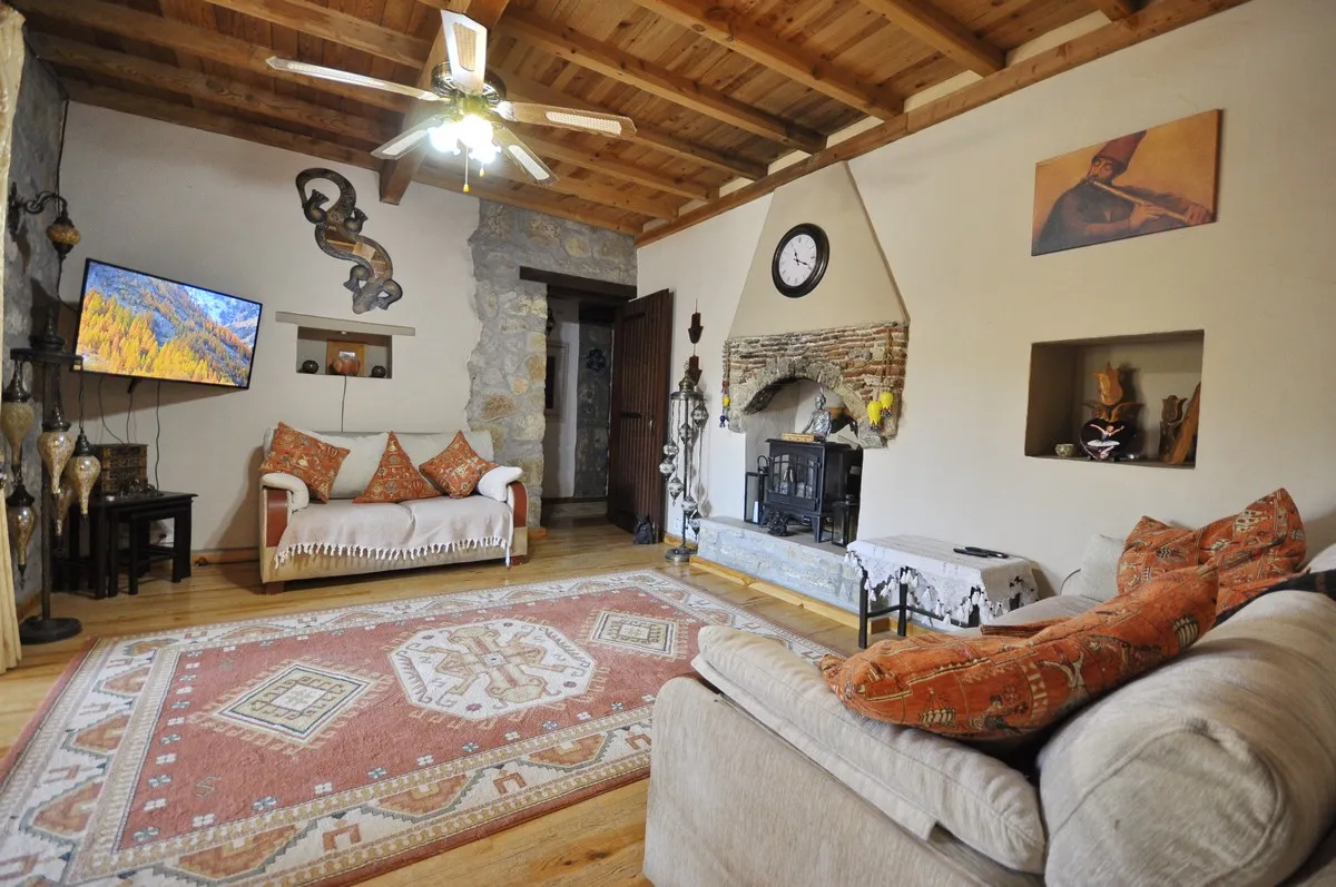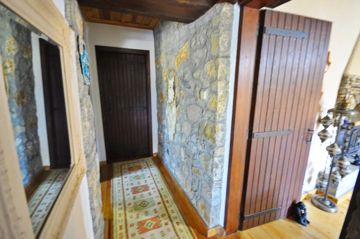 Zarif şömine, tam donanımlı mutfak, el işçiliği ahşap detaylar ve doğal taş dış cephe, bu villayı özel kılan unsurlardandır.