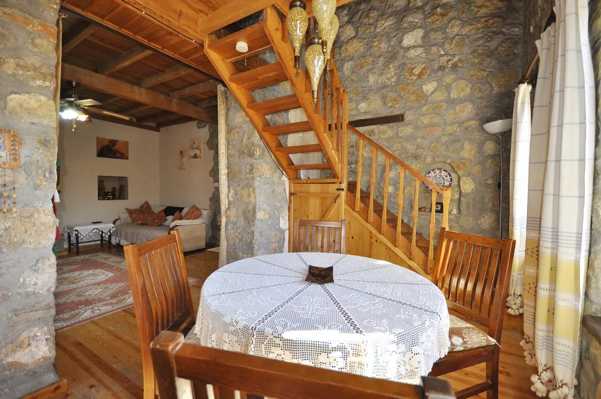 Fethiye’nin tarihi ve doğal güzellikleriyle ünlü Kayaköy bölgesinde yer alan bu özel taş villa, geleneksel mimarisiyle modern konforu mükemmel şekilde bir araya getiriyor. Eski bir Rum evi olarak inşa edilen yapı, bölgenin özgün dokusuna uygun biçimde tamamen restore edilmiştir.