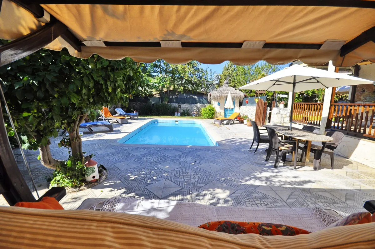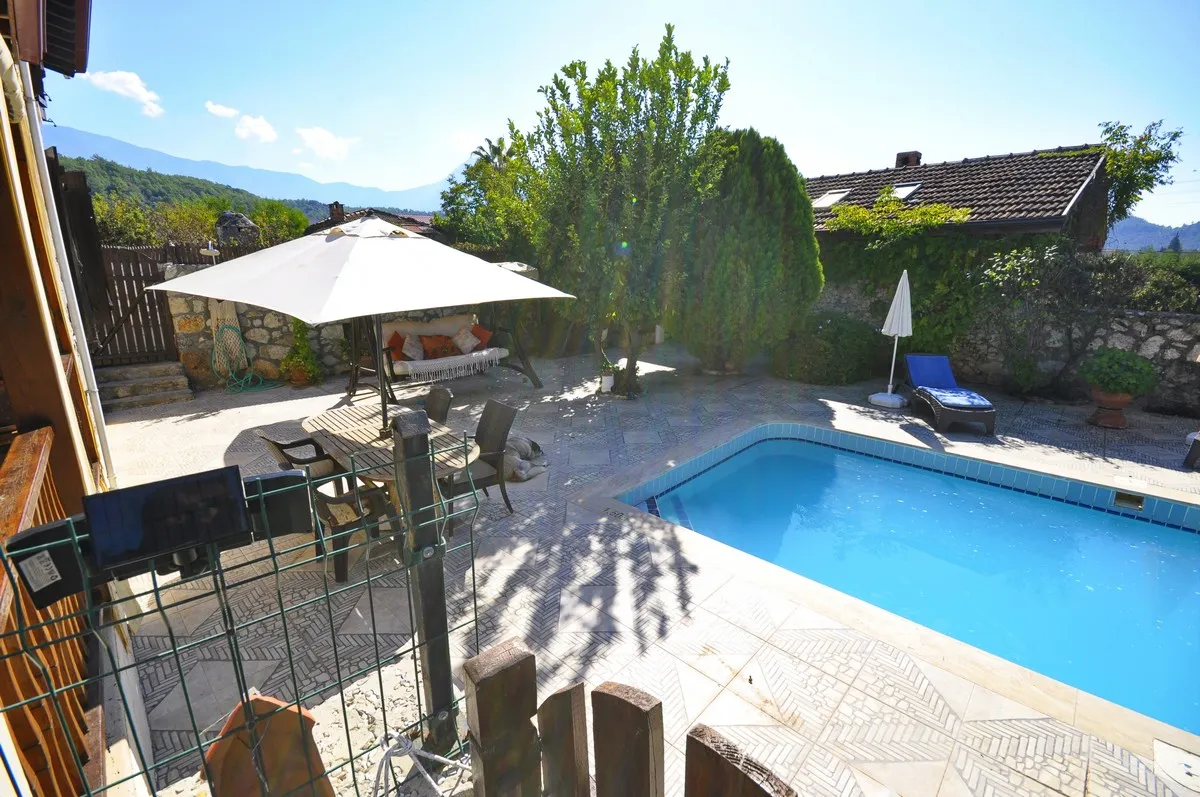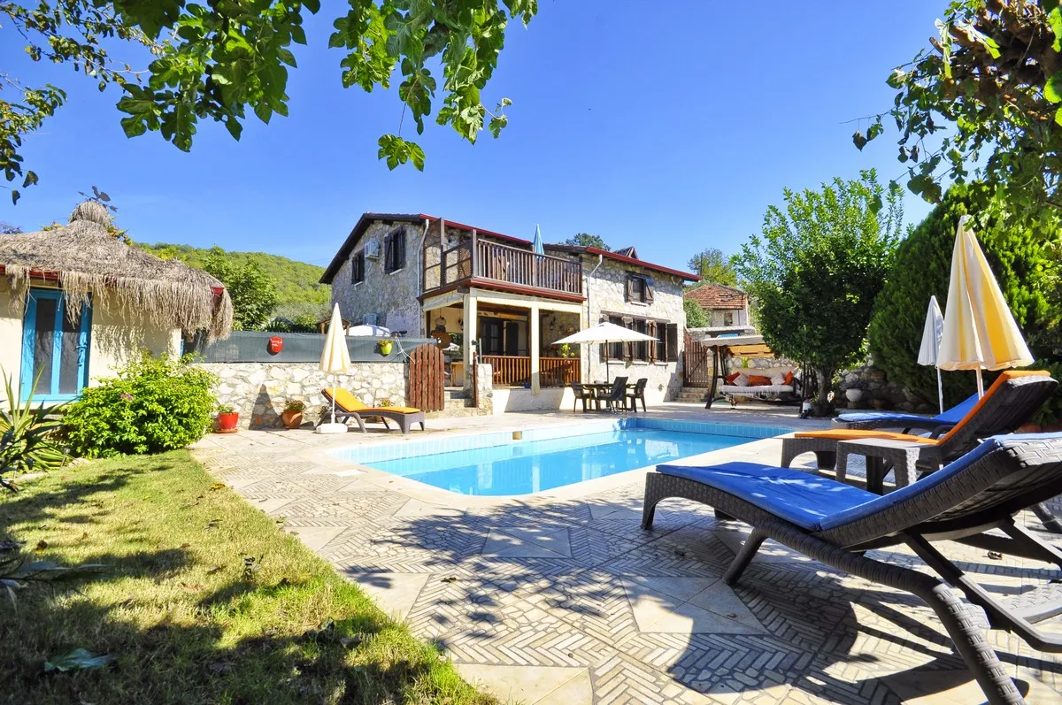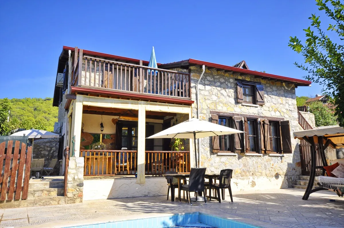 Kayaköy’de Özel Havuzlu ve Vadi Manzaralı, 3 Yatak Odalı Otantik Taş Villa